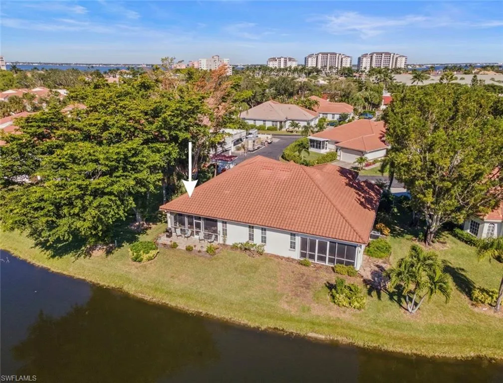 TURNKEY WATERFRONT CORNER VILLA w/ NO HURRICANE/FLOOD DAMAGE off of IONA Rd in Fort Myers. Low maintenance living with amenities including newly renovated pool, tennis/pickleball courts, as well as access to private DOCK, BOAT RAMP, fishing pier, beach, & MARINA, all included in ONE LOW QUARTERLY HOA FEE. This low-maintenance villa sits on the corner of a private subdivision with only a handful of other villas, quietly tucked away off of Iona Road & Mcgregor. Sliding doors open to the extended patio OVERLOOKING THE WATER with multiple seating areas & allow for a true indoor/outdoor feel where you can enjoy wildlife & fishing for bass in your own backyard. This 3 bedroom, 2 bathroom corner home has tons of natural light throughout, has been kept meticulously maintained, & has a number of upgrades, including a newly UPDATED KITCHEN with KitchenAid appliances & tile/laminate floors throughout. Home is offered “TURNKEY” (including furniture) so new owners can move right in. Location off of Iona Road/Mcgregor is ideal, close to Sanibel Island/Fort Myers Beach, shopping, RSW International Airport, and restaurants. True Florida living, with very low maintenance or fees!
