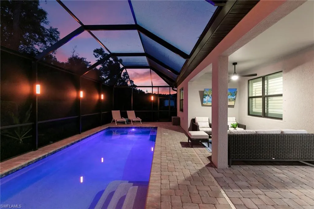 Experience modern coastal living in this 2023-built 3-bedroom plus den, 3-bath home located in Ventana Pointe, a peaceful, quiet, gated community in Naples known for its natural beauty and relaxed lifestyle. This beautifully designed residence blends comfort, elegance, and resort-style outdoor living—just a short drive to the Ritz-Carlton, Waterside Shops, Mercato, world-class dining, boutique shopping, and the Gulf’s white-sand beaches.