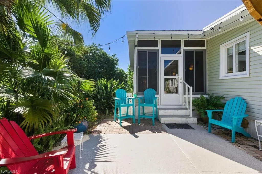 This tropical oasis features an updated interior, lush landscaping, and a sizable tiki hut (with epoxy floor), that is perfect for drinks, socializing, or just hanging out. There are two bedrooms and a den with a Murphy bed. The kitchen has quartz countertops, newer appliances (the stove is brand new), and an abundance of cabinet space. There is engineered hardwood flooring throughout. Storm windows increase the home’s energy efficiency and reduce street noise, while providing extra protection during inclement weather. The tiled glass-enclosed lanai is a tranquil setting to enjoy your morning coffee. Attention to detail accentuates the polished feel of the home, including crown molding, custom glasswork, and built-in shelving for the dining room. Even the fixtures have been updated in order to give the home a modern feel. There is an epoxy finish on the driveway to increase curb appeal, a well for lawn irrigation, and a shed for storing tools or holiday decorations. Both bathrooms have updates, the Master Bath’s countertop granite, the Guest Bath featuring a jetted soaking tub. The Master Bedroom has a sizable walk-in closet and second smaller closet to accommodate a large wardrobe. Riviera Golf Estates is a friendly 55+ community just eight miles from Naples’ gorgeous beaches and a short ten-minute drive from the restaurants and shops on 5th Avenue. The community features one of the lowest HOA fees in Naples: $144/mo. (includes internet). The amenities are excellent: a heated saltwater pool with lap lanes, exercise room, tennis/pickleball/bocce/shuffleboard courts, billiards room, and a huge clubhouse with a very active social calendar for all to enjoy. This is a cozy home that doubles as the perfect spot for making new friends and entertaining guests.