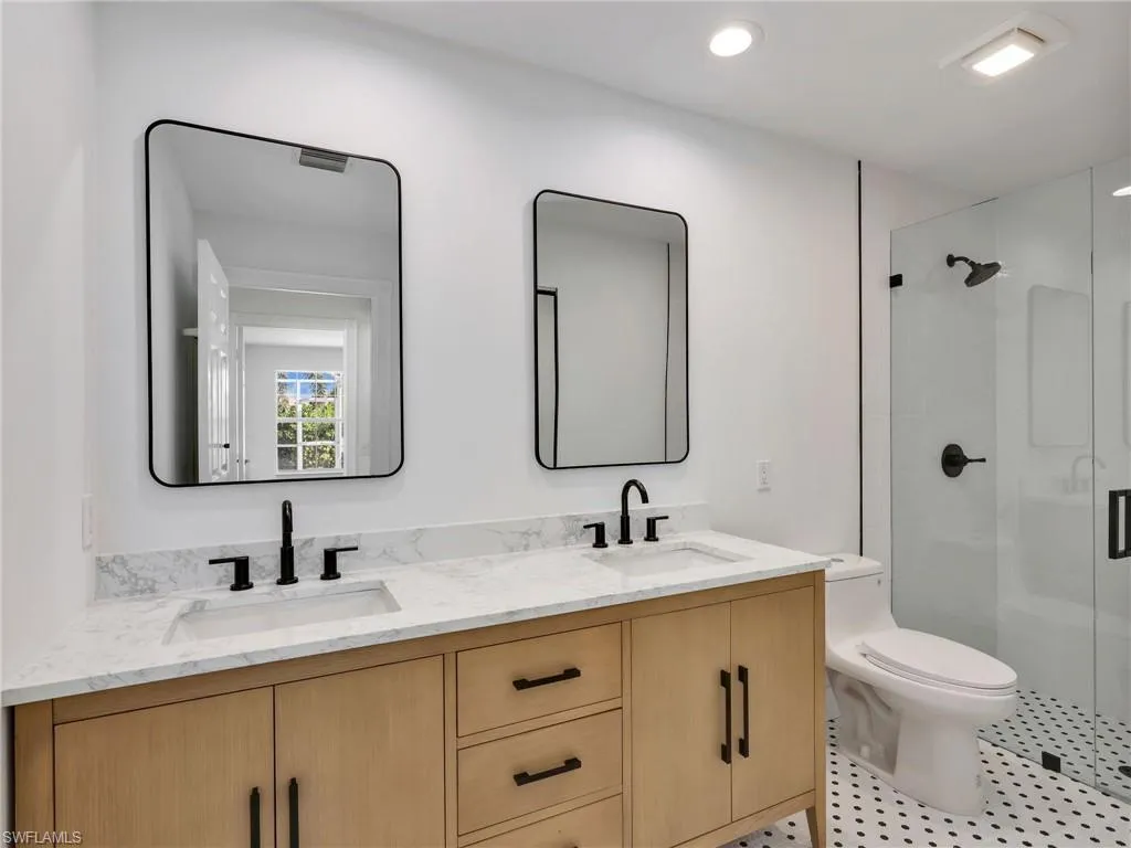 Both bathrooms have been beautifully updated with designer tile, new vanities, new toilets, and all-new plumbing.