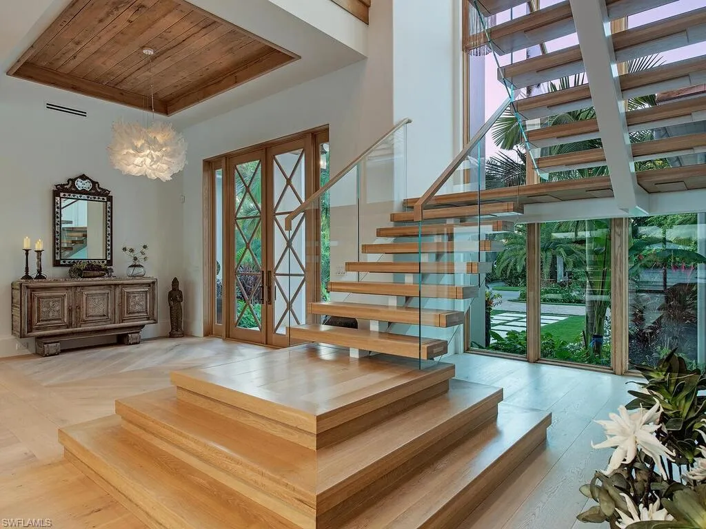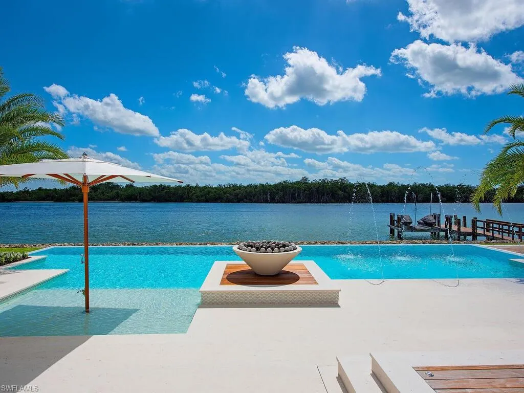 This is an incredible opportunity to own a masterfully designed custom Port Royal home, perfectly positioned on an oversized lot and half with a remarkable 177’ of water frontage. Featuring highly desirable and rarely available southern exposure, this breathtaking estate was built in 2024 by Knauf- Koenig Group and designed by Kukk Architecture to the highest possible standards and specifications. Exquisitely appointed with materials imported from around the world, the light-filled home offers the utmost in privacy and comfort with spectacular and expansive views of Naples Bay. This visually stunning residence sets a new standard for ultra-luxury properties in Naples. At over 11,500 square feet, the home feels like a true oasis, offering incredible amenities including an exercise room, studio, luxurious second floor spa, and more. The vast exterior living space features a stunning outdoor kitchen, a beautiful al fresco dining area, BBQ grill, multiple fire pits, one with a large seating area, enormous infinity edge pool and relaxing spa. This magnificent residence is a true one-of-a-kind offering the best of the Naples luxury lifestyle for the most discerning client.