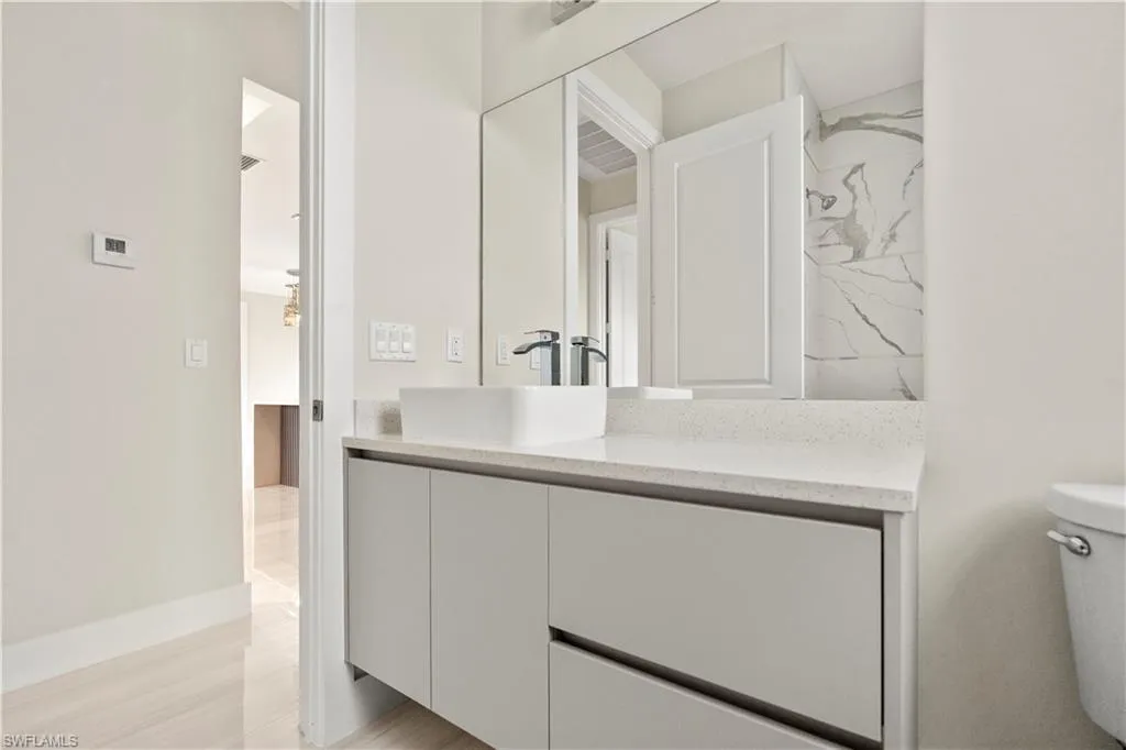 ** READY TO MOVE IN NOW ** This stunning 3-bedroom + den new construction home sits on an oversized 1.59-acre lot, offering endless possibilities—add a pool, bring your pets and toys, or build a future guest house since the property meets county requirements. From the moment you enter through the tall French doors, you’ll notice the bright, open layout and exceptional attention to detail: elegant tile flooring throughout, soaring tray ceilings, beautiful crown molding in the main living areas and primary suite, 8-ft doors, and an airy living room that fills the home with natural light. The modern chef-inspired kitchen features 42″ custom light-colored cabinetry, quartz countertops, a stunning waterfall island, and a stylish backsplash. The bathrooms elevate the home’s contemporary feel with over-the-counter vessel sinks and sleek waterfall faucets. Nestled in the rapidly growing Golden Gate Estates, this property offers privacy while being just minutes from shops, supermarkets, and top-rated Naples schools—making it not only a beautiful home but also an incredible long-term investment for your family! **PROFESSIONAL PHOTOS COMING SOON, PHOTOS ON MLS ARE OF SAME MODEL, DIFFERENT LOCATION**