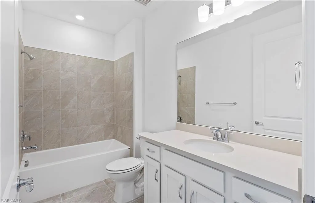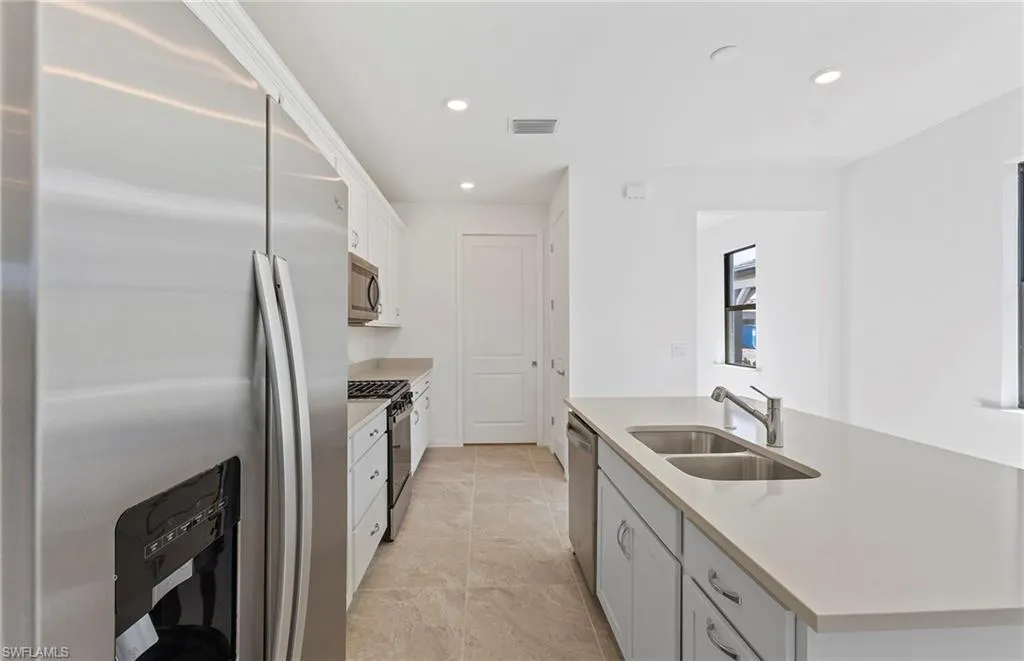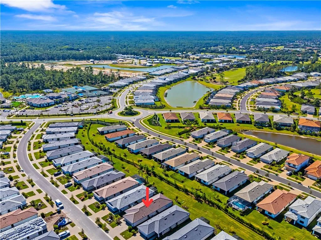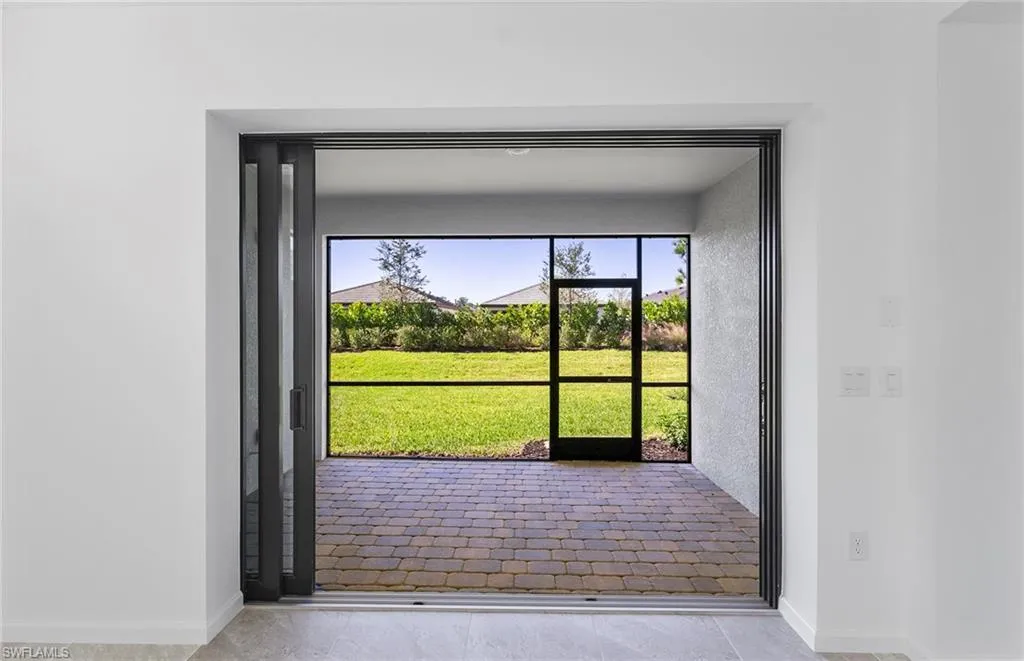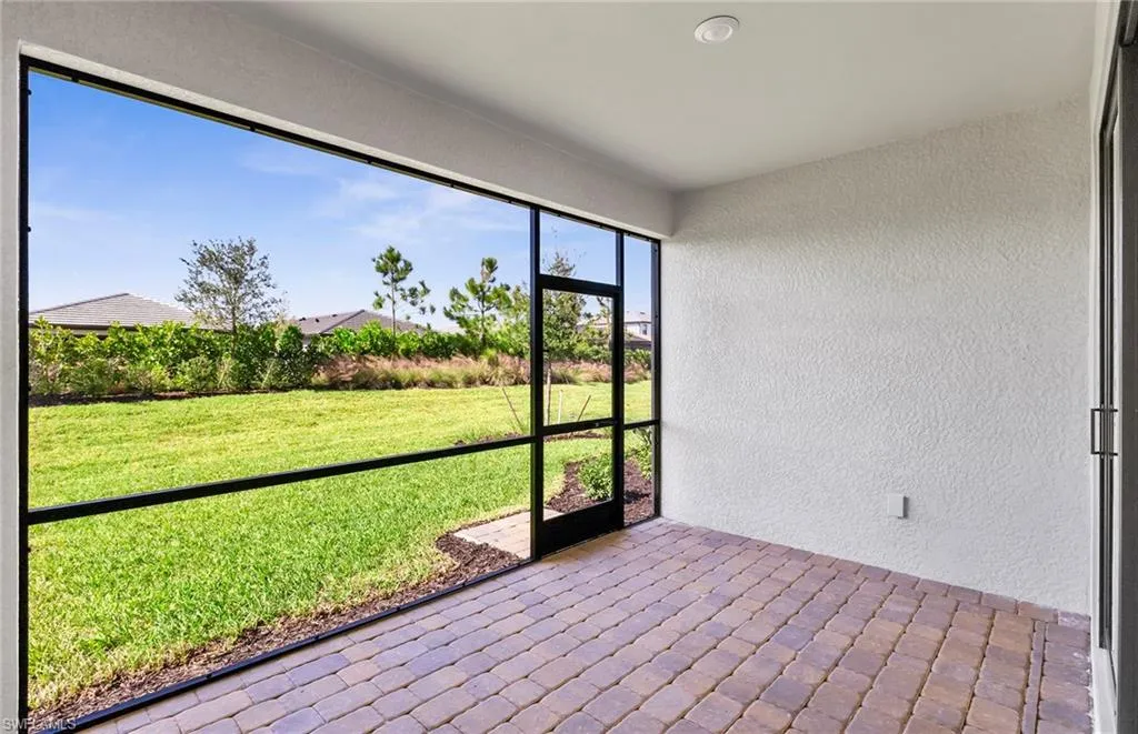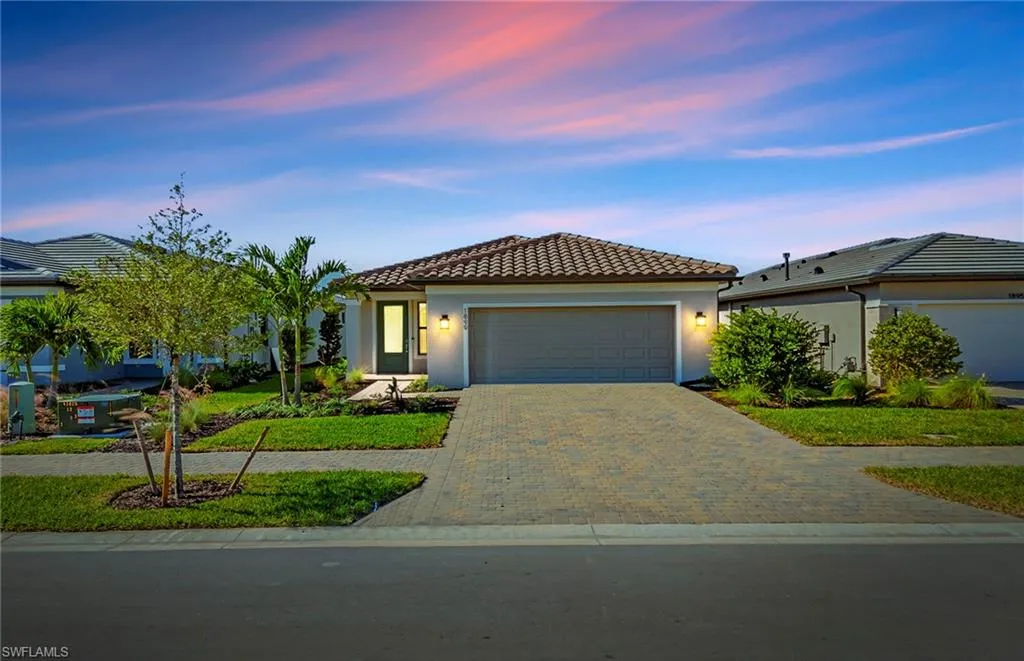 This Hallmark floorplan offers 3 bedrooms, 2 bathrooms, and a 2-car garage with a 4′ extension, thoughtfully designed for modern living. The home features an outdoor-kitchen pre-plumb, a pocket sliding glass door, and a full laundry upgrade with cabinets and countertops. Additional highlights include a tray ceiling in the owner’s suite, white cabinetry with quartz countertops, tile flooring throughout, 8′ interior doors, and a pool or spa pre-wire. With a tile roof and impact windows, this beautifully appointed home combines style, functionality, and comfort for everyday living and entertaining. Terreno by DiVosta is a gated community offering a resort lifestyle with open floor plans, gourmet kitchens, and large outdoor living spaces. For those looking for resort lifestyle communities with private amenities and modern houses, or luxury homes for sale in Naples, FL, Terreno should be your top choice. Neighborhood features include 15,000 sq. ft. grand clubhouse with large community room for events, catering kitchen, state-of-the-art fitness center, exercise studio, 8 pickleball courts, 2 tennis courts, dog park, playground, firepit lounge, dog park, resort style pool, lap lanes, heated spa, full-service restaurant bar & grill, food truck drive-up, 18-hole public golf-course next door & more!