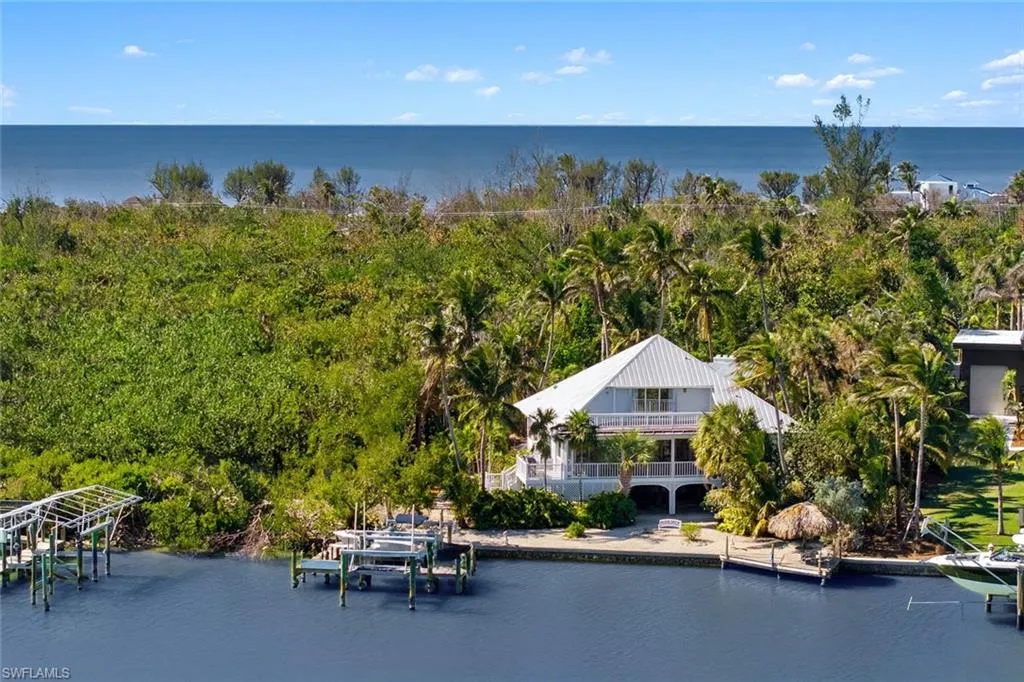 This secluded Captiva Island estate unfolds like a secret whispered along the shores of Roosevelt Channel, where privacy and natural beauty blend into an atmosphere of pure coastal enchantment. Approached by a modest shell drive softened by lush vegetation, the entrance is marked only by a discreet sign: Le Jardin: The Garden. It is an invitation into another world, where tropical abundance greets you in every direction. Swaying palms, fragrant citrus groves, and vivid blooms guide your journey through nearly two acres of waterfront paradise. As the winding drive gently curves beneath the canopy of greenery, the estate slowly reveals itself. At its heart stands an exquisite Old Florida inspired residence, perfectly poised along the serene waters of the channel. With three bedrooms and two and a half baths, the main home evokes the timeless romance of Florida’s classic coastal architecture, offering stunning water views from almost every room. Inside, the expansive kitchen becomes a natural gathering place, centered around a gas range ideal for culinary celebrations. Here, lingering conversations unfold beside the warmth of the fireplace, while large porches just beyond invite you to breathe in the salt-kissed breeze and watch as dolphins play and boats drift by in the afternoon sun. Steps from the water, your private dock extends into the channel, complete with two boat lifts ready to host your adventures. The days here are effortlessly filled with the best of island living: setting out on the boat to fish or explore nearby islands, cruising to waterfront restaurants, or slipping a kayak into the calm blue water to paddle toward the untouched sanctuary of Buck Key just across the channel. For quieter moments, a thatched tiki hut offers peaceful shade along the shoreline where you can savor the stillness of the island. Meandering deeper into the property, you arrive at the charming two bedroom pool house. Beamed ceilings soar above a warm, inviting space anchored by a stone fireplace. A cozy kitchenette, relaxed seating areas, and game spaces encircle the screened swimming pool, creating a private oasis for effortless entertaining and unforgettable gatherings. Further along the shell path, a generous garage and storage building awaits, designed to shelter everything from bicycles and beach gear to kayaks and boating essentials. At the very end of the lane, tucked elegantly within the gardens, sits a picturesque guest cottage complete with a full kitchen, living room, bedroom, and bath. It is an intimate hideaway perfect for visiting friends or attentive caretakers, enveloped in the tranquility of nature. Le Jardin is more than an estate; it is an experience. A retreat where the rhythm of island life guides each day and the outside world feels wonderfully distant. Here, time slows, the air sweetens, and the hurried pace of life is gently set aside at the entrance to your extraordinary garden sanctuary.
