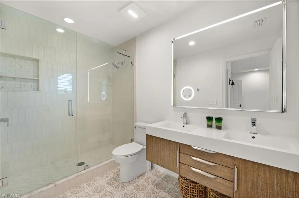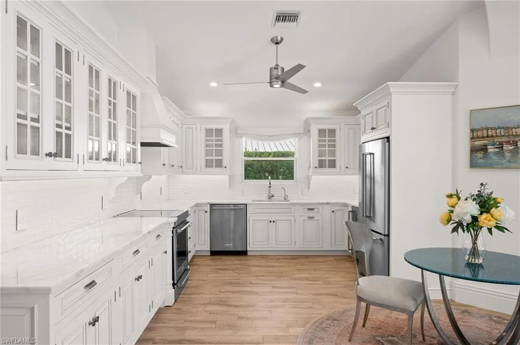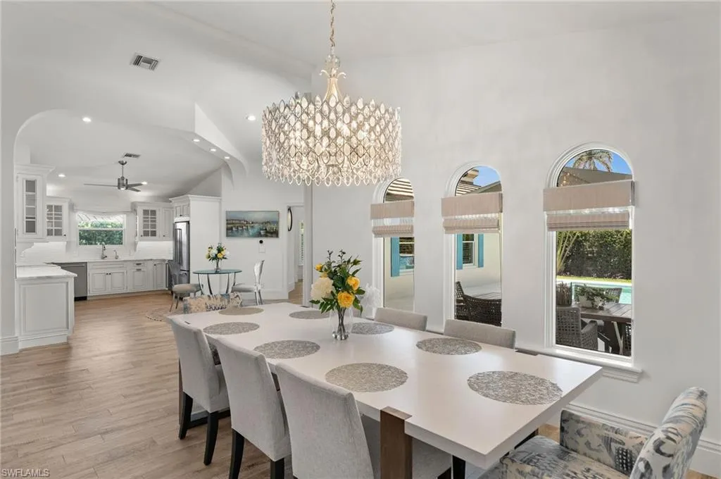 Centrally located in the City of Naples and minutes to historic 5th Avenue !This fully fenced spacious 3 bed and 3 bath residence was completely rebuilt and remastered in 2005. The open great room plan with soaring ceilings and custom kitchen cabinetry is every entertainer’s delight. Kitchen equipped with high-end appliances, wine cooler, wine rack, and built-in reverse osmosis. Water softening system throughout the house .Elegant touches in every part of the entire home: Legrand system, custom window coverings, Robb & Stucky custom furniture, ample storage w/custom closets in all bedrooms: built-ins and epoxy floor in the air-conditioned garage. A retractable insect screen installed over the garage door keeps the space impenetrable to the critters. Property is located in the X -flood zone