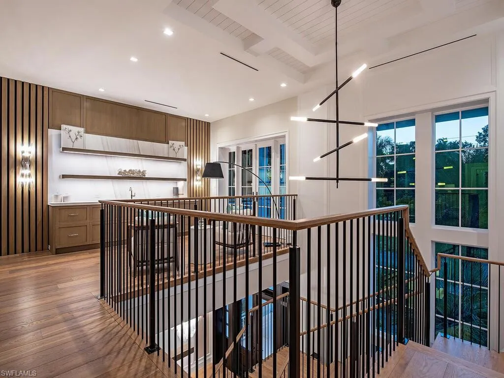 Fantastic opportunity to acquire this MHK Architecture designed, stunning home built by VIV. Situated on an oversized 100×185 homesite on iconic Gordon Drive, ideally close to Naples’ white-sand beaches and 3rd Street South. This 2023 coastal contemporary estate offers 7,384 sq ft of air-conditioned living space with 5 bedrooms + study, 6 full and 2 half baths, upper lounge, VIP living area, and glass-enclosed exercise room. Exceptional finishes include Legno Bastone wide-plank flooring, Poliform closets, natural stone accents, designer fireplace, Lutron HomeWorks lighting and shade control, Sonos audio, elevator, and two laundries. Gourmet kitchen and separate service kitchen feature elite appliances, gas cooking, double ovens, steam oven, and built-in ice maker. Additional features include air-conditioned 4.5-car garage with EV charging, whole-house generator, impact-rated doors and windows, and full concrete construction. Expansive outdoor living area showcases a 65’ resort-style pool with swim-up bar, gas-heated spa, outdoor kitchen with island, fireplace, fire pit, and automated roll-down screens and shutters. Offered furnished and built for the ultimate luxury lifestyle.