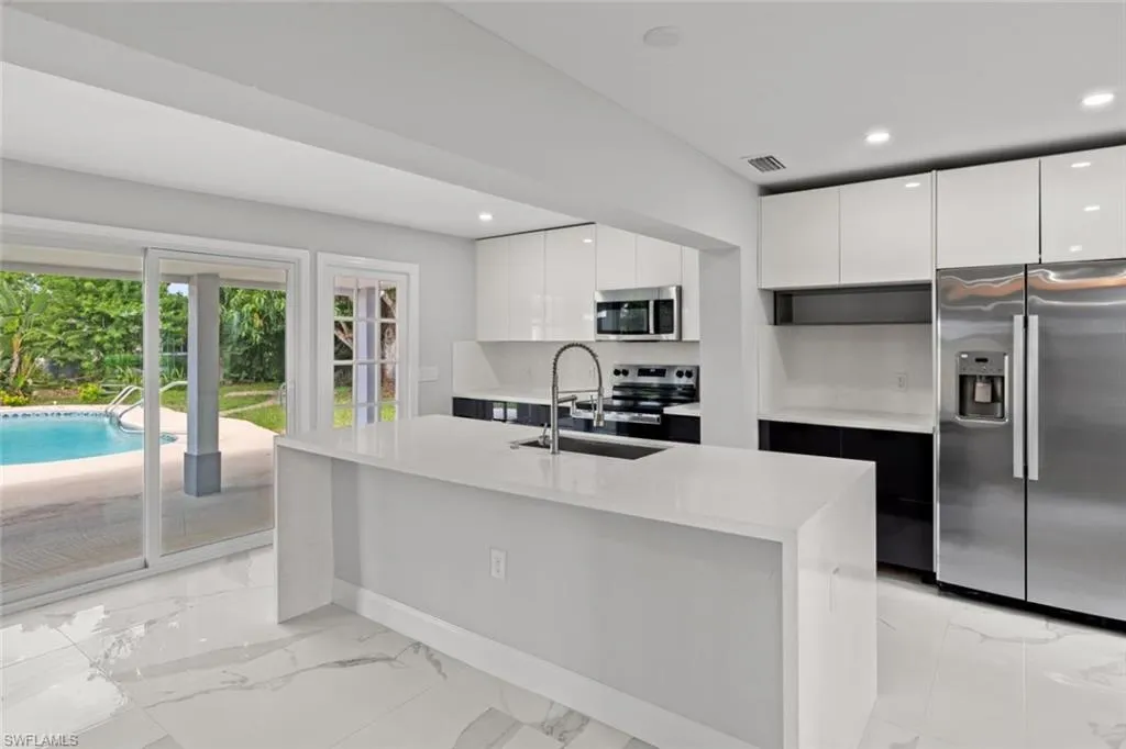 Discover this beautifully remodeled and super charming 3-bedroom, 2-bath pool home set on almost ½ acre directly across from the Estero River. This home has been extensively updated with a New Roof, New A/C, New water system, New Water heater, new electric, new plumbing, new bathrooms, flooring, walk in closets, impact sliding doors that open to a picture perfect, charming pool area.