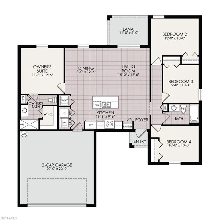NEW BUILD – Anticipated completion date is December 31st, 2025. SPECIAL INCENTIVES: Up to $25K Towards Closing Cost/Prepaids when using Preferred Lender. The 1,426 -square-foot (air-conditioned) Windsor plan boasts a well-designed open floor plan that includes four bedrooms, two bathrooms, and a two-car garage. The kitchen boasts upgraded 30” contemporary shaker-style cabinets, a spacious kitchen island with upgraded quartz countertops, Whirlpool dishwasher, microwave, and range, refrigerator, washer & dryer. The Kitchen overlooks a spacious great room that features beautiful tile-plank flooring and vaulted ceilings. The expansive owner’s suite features a private bathroom, with a separate linen closet, and large walk-in closet. The three guest bedrooms share a guest bathroom and are located opposite the owner’s suite. The Windsor also features a decorative brick paver driveway, a professionally designed landscaping package, and designer-selected paint colors, light, and plumbing fixtures, impact resistant windows and doors.
