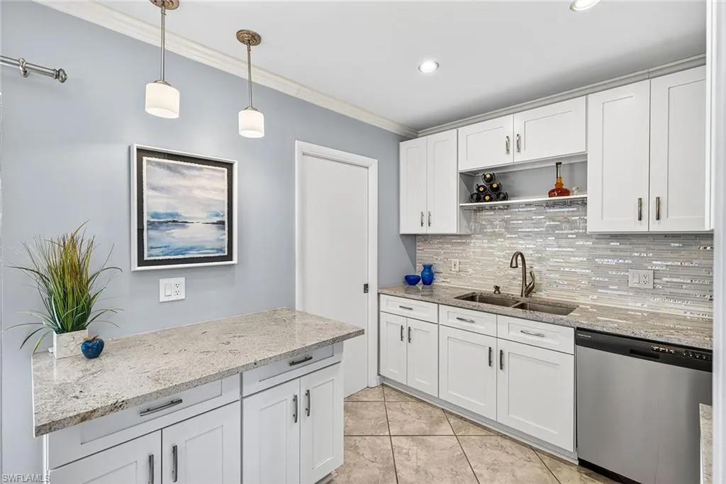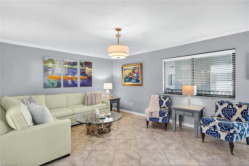 Located in beautiful Park Shore, this updated top-floor residence offers a serene southern exposure with pool and lush landscape views. The home features tile floors throughout, a modern kitchen with quartz countertops, a custom tile backsplash, and stainless steel appliances. The spacious primary suite includes crown molding and a renovated bath with a glass-enclosed walk-in shower. A screened lanai, accessible from the living room and bedroom captures soft sunlight all day while hurricane rated windows and shutters provide peace of mind. Hidden Lake Villas offers resort-style amenities including a library, pickleball, and tennis courts, highlighted by the largest community pool in the area, with lap lanes and low entry stairs. Residents can enjoy private access to Park Shore Beach through the Park Shore Association, complete with dedicated parking, showers and picnic areas. Perfectly situated near 5th Avenue South, Venetian Village, and Mercato, this location delivers effortless access to Naples signature coastal lifestyle.