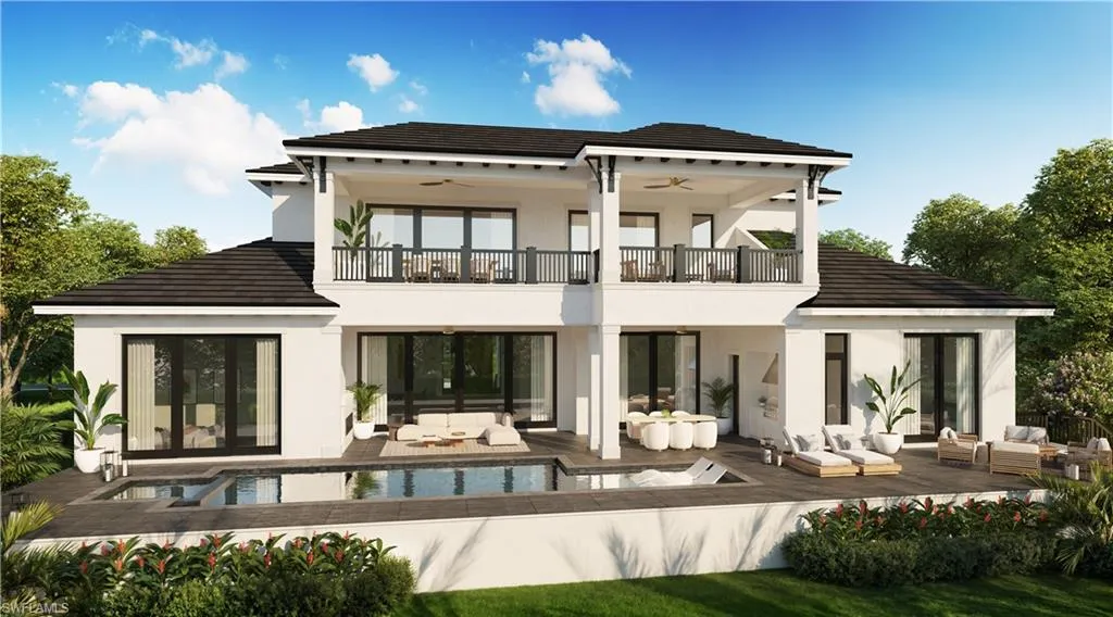 Introducing a remarkable, classic contemporary residence in the heart of Park Shore, crafted by the esteemed team of JMDG Architecture, the reputable interior design firm Clive Daniel Home, and luxury builder Asta Homes. Perfectly located just minutes from Naples’ finest shopping, dining, and beaches, this 5-bedroom plus office estate offers exceptional design, premium craftsmanship, and elevated modern living. The thoughtful floor plan provides ultimate convenience with the primary suite, a guest bedroom, and a private office all located on the first floor. Upstairs, discover three additional en-suite guest bedrooms and a massive loft/second living room, creating ideal separation and comfort for family and guests. With 8 total bathrooms, the home ensures effortless privacy and accommodation for all. The interior showcases a refined coastal modern aesthetic with wide-plank white oak floors, Elegante custom cabinetry, and distinctive architectural ceiling elements adding depth and style throughout. The gourmet kitchen is a standout, featuring high-end appliances, a spacious walk-in pantry, ample storage, a built-in coffee maker, and abundant natural light, creating a perfect blend of functionality and luxury. A dramatic pivot front door welcomes you into the open-concept living area, anchored by a sleek vapor fireplace. Built to an impressive 11 ft elevation, the home offers added peace of mind with enhanced flood protection. Modern conveniences include a Lutron lighting system, Sonos speakers throughout the main areas, and a buried propane tank, discretely integrated into the property. Designed for premier indoor/outdoor living, the home boasts an expansive covered outdoor living area complete with a full outdoor kitchen, fireplace, and a convenient pool bath, providing an ideal setting for year-round entertaining. A 3-car garage offers generous space for vehicles, storage, and coastal living essentials. Scheduled for completion in February, this exceptional Park Shore residence combines world-class design, superior construction, and an unbeatable Naples location.