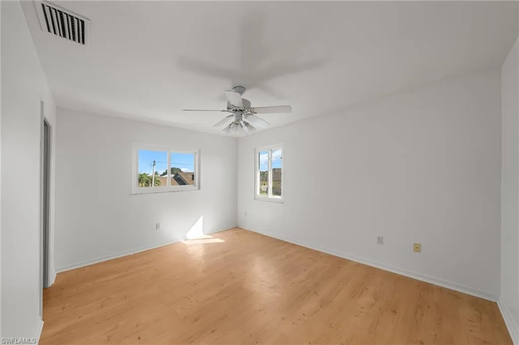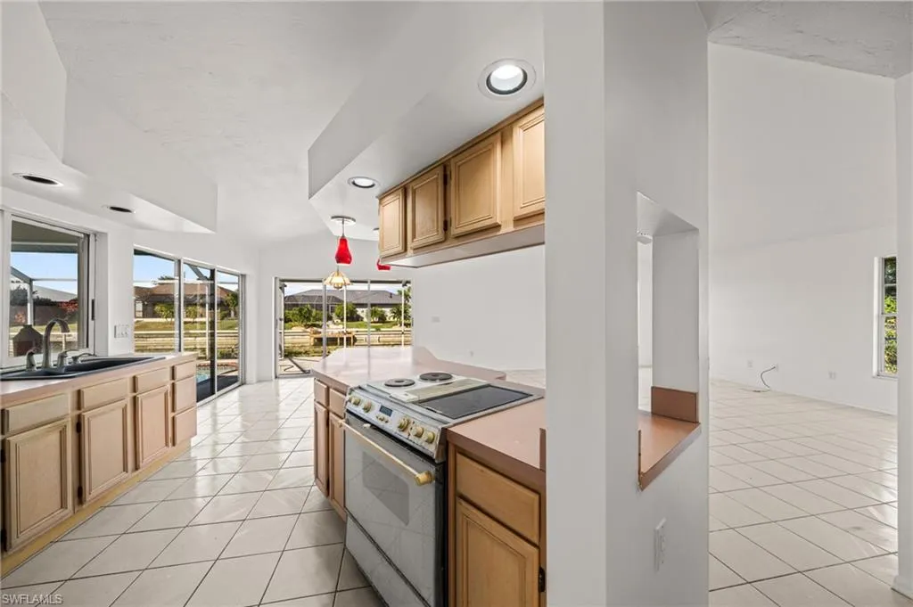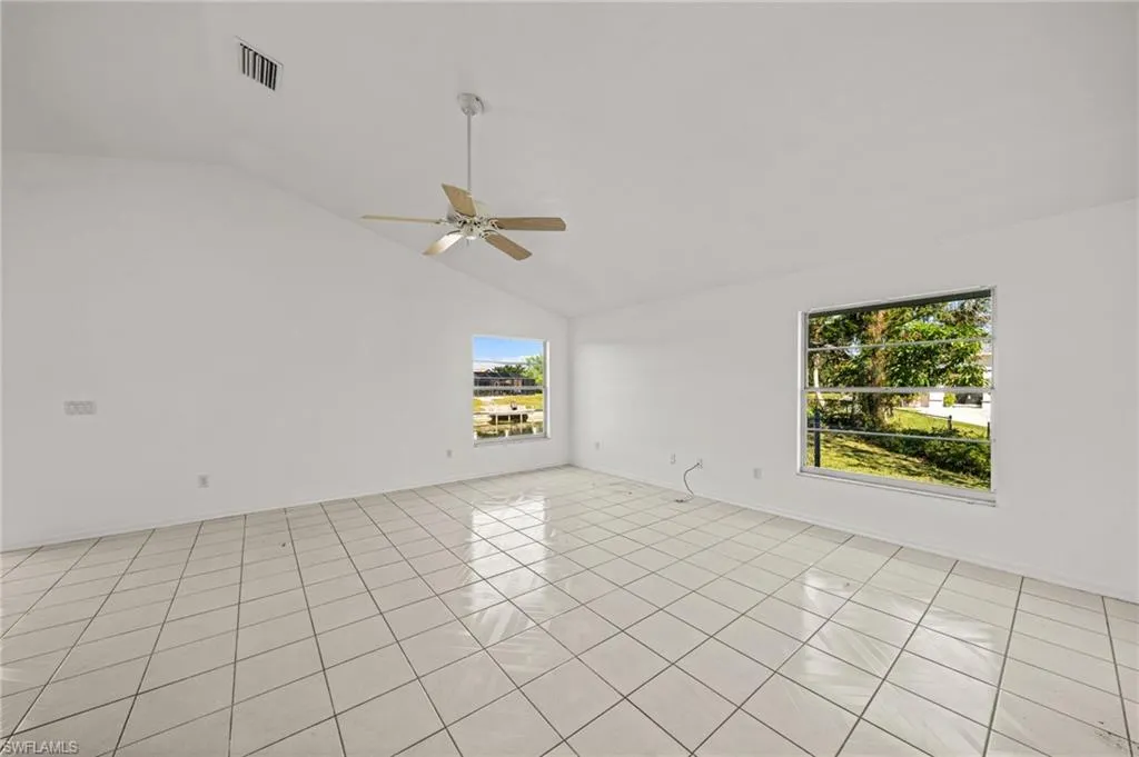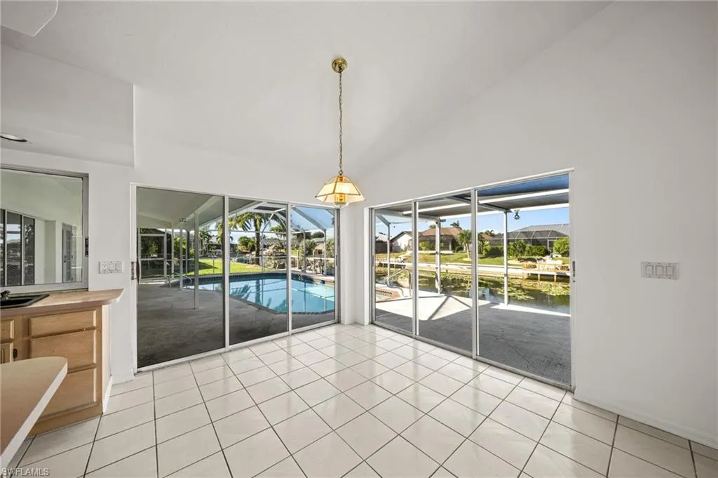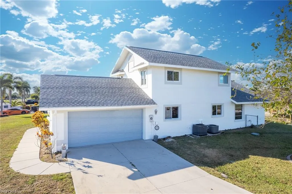 Waterfront Home with Oversized cul-de-sac Lot in Shamrock Lakes! Located at the end of a quiet street in the desirable Shamrock Lakes neighborhood, this spacious waterfront home sits on an oversized, hammerhead-shaped lot, offering 120 feet of waterfront, whereas most nearby lots offer only 80 feet. With 2,956 square feet of living space and nearly 5,000 total square feet, this home offers room for everyone with 5 bedrooms and 3 full bathrooms, perfect for large families, multi-generational living, vacation rental, or flexible options such as a home office or fitness room. The home features a new roof, a fresh coat of exterior and interior paint, and incredible potential for the next owner to customize to their taste. All upstairs windows are hurricane impact. Inside, natural light fills every room, and multiple sets of triple sliding glass doors bring expansive views of the pool and water into the living spaces. The open kitchen offers abundant natural light and overlooks the dining and pool areas, creating the ideal layout for entertaining. A separate living room and family room. The Master Suite is extremely spacious and features cathedral ceilings, wood flooring, and peaceful water views. The master bathroom includes dual sinks, a walk-in shower, a jetted soaking tub, and a private atrium that brings in natural light. Guest bedrooms are generously sized, offering comfort for visiting family and friends. Live the Florida lifestyle in the expansive screened pool area with large, covered spaces for dining and relaxing by the water. A concrete dock and seawall offer additional outdoor living space, perfect for fishing, lounging, or launching a kayak or paddleboard. This freshwater canal system connects to miles of lakes and waterways for boating, fishing, kayaking, paddleboarding, jet skiing, and more. Ideally located near Hunters Run Executive Golf Course, Sun Splash Family Waterpark, and Cape Coral’s premier dining and shopping, this home is also close to major redevelopment projects including The Cove at 47th, Bimini Square, the reimagined Cape Coral Yacht Club, and Slipaway Marina, all bringing vibrant new life, waterfront dining, entertainment, and community amenities to the area. Come experience the beauty and serenity of waterfront living on Shamrock Lakes, where every sunset and breeze reminds you why Southwest Florida is paradise.