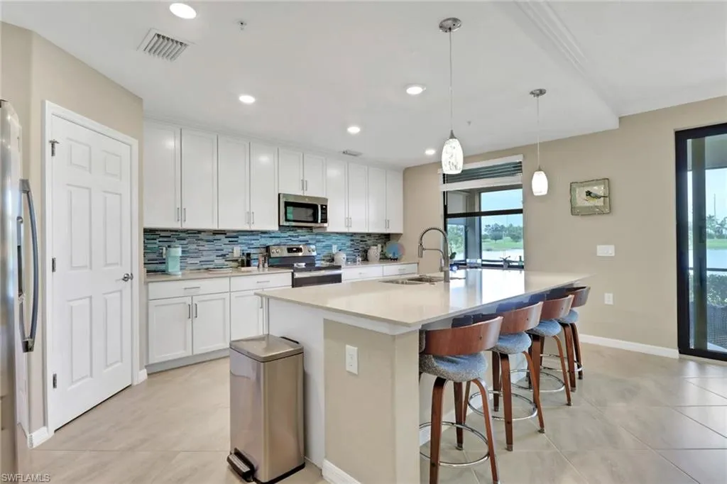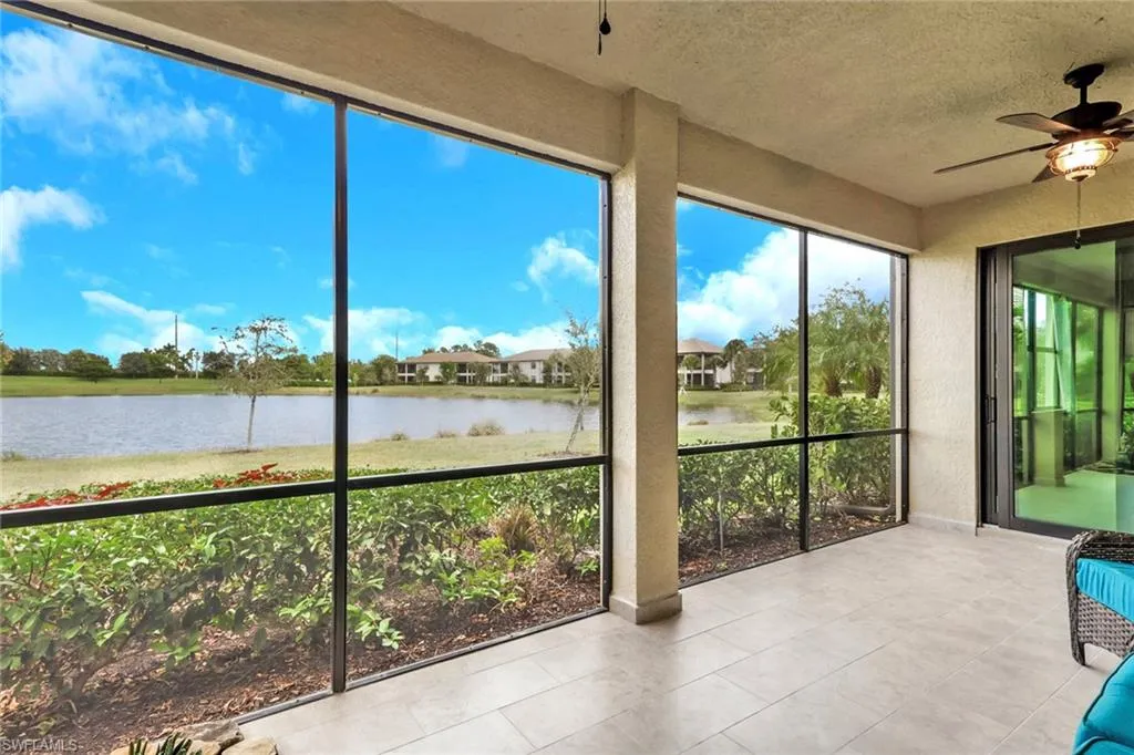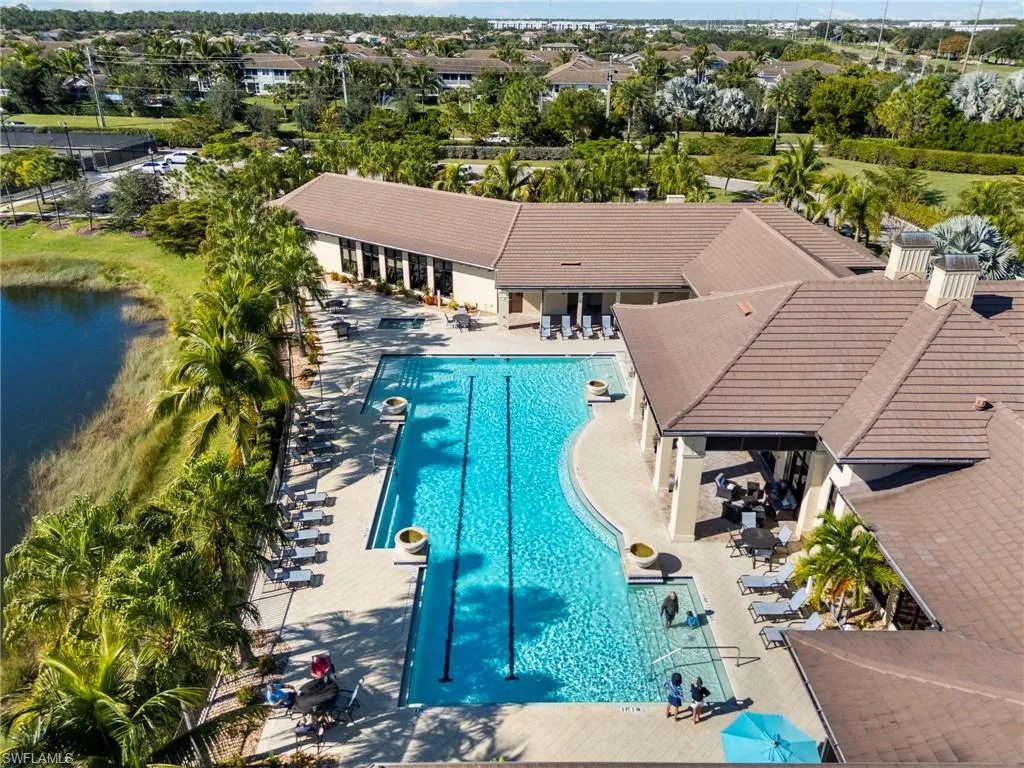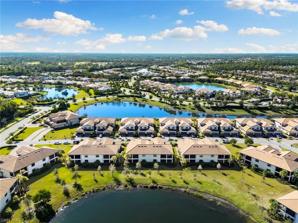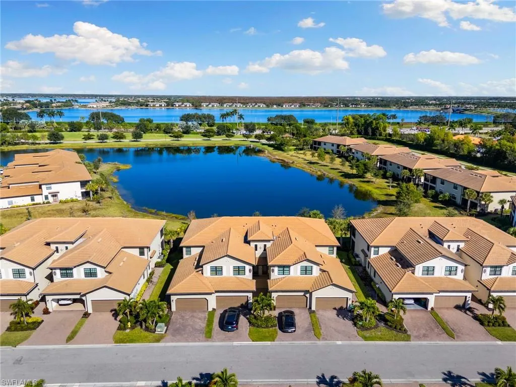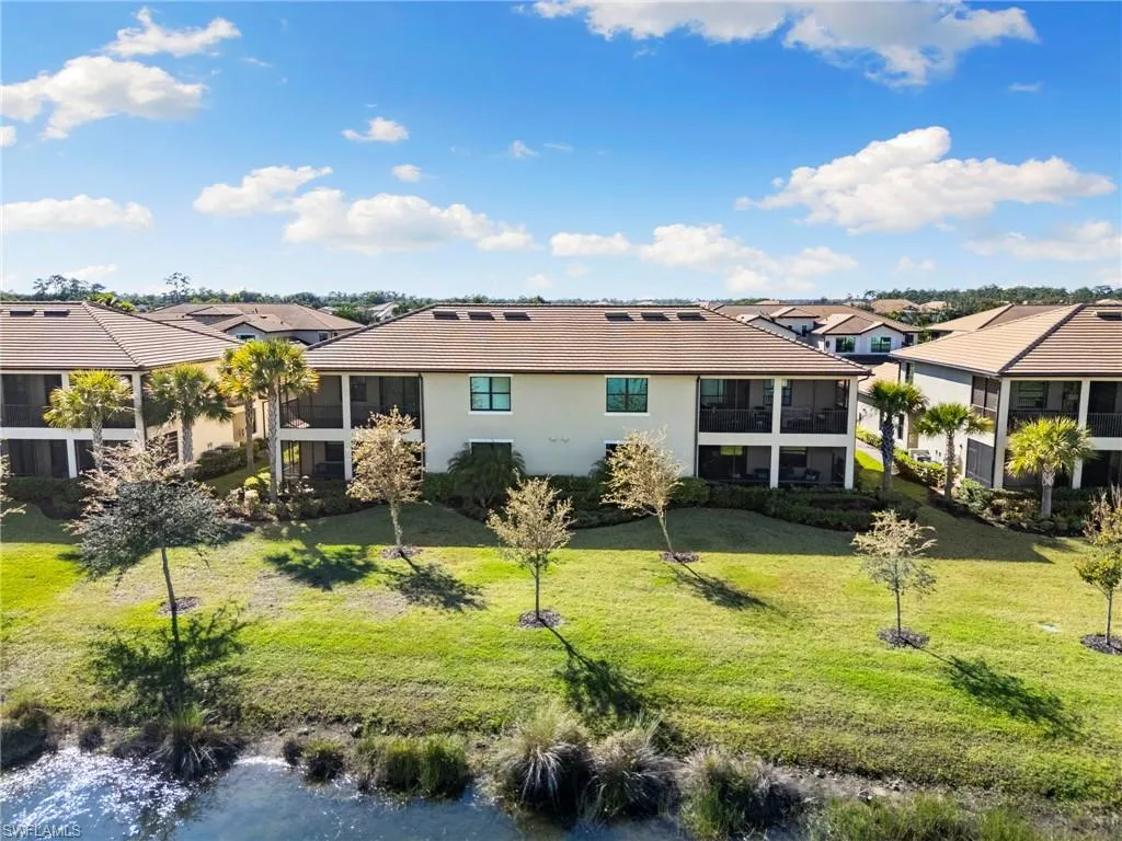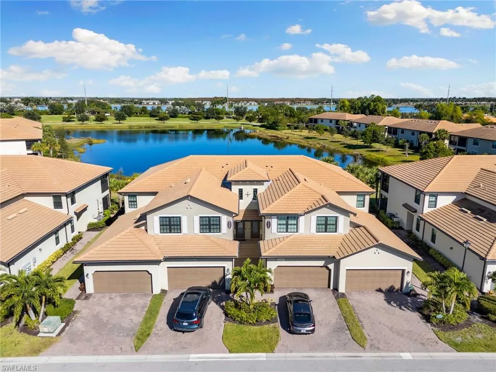 Welcome to this stunning residence featuring a prized lakefront view in the impeccable 2021-built LaMorada community. This bright, first-floor coach home offers a smart 3-bedroom, 2-bath layout, featuring essential upgrades like Hurricane Impact windows/doors and elegant crown molding. The heart of the home is the open kitchen, designed for entertaining, boasting attractive white shaker cabinets, quartz countertops, and a modern glass tile backsplash. The home provides comfortable, updated living with tile flooring in the main spaces and new LVP in all bedrooms. Step out to the spacious screened lanai, perfectly aligned with a prized Northern exposure, which guarantees cool afternoons and a peaceful long lake view—all without any homes directly across the water. Residents gain access to the acclaimed 13,700 sq. ft. clubhouse amenities, including a huge resort-style pool, fitness center, on-site dining, Har-Tru tennis courts, pickleball, and bocce. Located just minutes from Mercato and the Gulf beaches, this home offers superb value and ultimate convenience.