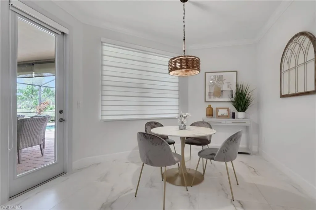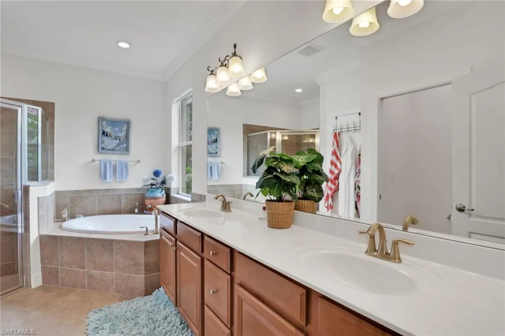 This recently remodeled Princeton II model, constructed in 2016, offers four bedrooms and two bathrooms and a heated pool and spa with a picturesque lake view. Positioned near the end of a cul-de-sac, the residence is in an X FLOOD ZONE which features a lot that affords additional space and enhanced privacy. Notable upgrades completed in 2022 include elegant 24×24 tile flooring throughout, premium carpeting in each guest bedroom, custom closets in all bedrooms and the pantry, modern window coverings, new baseboards and trim, as well as refreshed interior paint throughout. The master suite provides direct access to the pool area, a spacious walk-in custom closet, and a generously sized bathroom featuring a soaking tub and separate shower. The open-concept kitchen and great room are designed to maximize enjoyment of western exposure sunsets. Dining options include both an informal dining area for everyday meals and a formal dining room suitable for special occasions. Additional amenities consist of a three-car garage with ample storage and a paved driveway. Residents benefit from exceptional community amenities with low HOA fees, encompassing two resort-style pools and spas, basketball and tennis courts, playgrounds, a splash pad, clubhouse, fitness center with a children’s play area, sand volleyball, and a fishing pier. This is Naples real estate at its best—whether you’re looking for a family home, second home, or investment property, this one checks all the boxes.