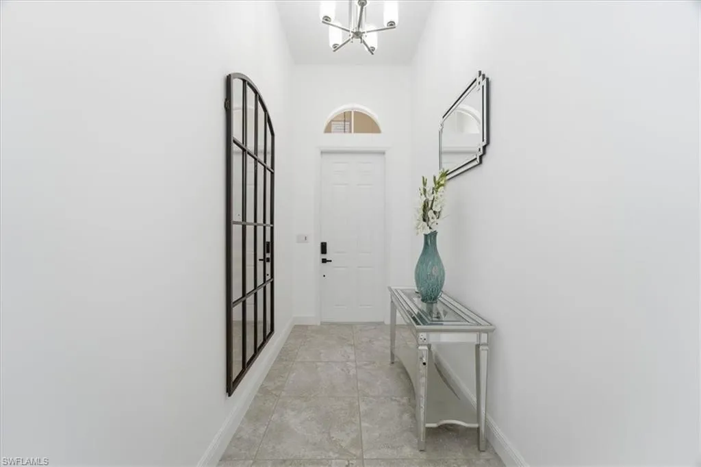 WELCOME HOME to this beautifully enhanced, upgraded Almanor home in the Maple Ridge Community located just a 1/4 mile from the center of town and Ave Maria Parish, in the Heart of Ave Maria, FL. The home features a beautifully landscaped and well-maintained yard with a wide driveway and soft accents on the exterior of the home, offering visitors a warm and inviting welcome. Situated on a quiet street with a lake in both the front and back of the home, tucked away from the hustle and bustle of traffic. Visitors will be welcomed to your home in the bright entryway hall. This 3 bedroom, 2.5 bath Almanor model boasts an open floor plan with tile floors throughout for easy low maintenance, a large kitchen, a pantry, double-layer granite countertops and complementary granite backsplash. The beautiful white cabinets are enhanced by recessed lighting with added lighting over and under cabinets adding to the room’s decor. The dining area features an elegant crystal hanging light, which gives ambiance to the room. The open floor plan in the dining and living room offers plenty of space for enjoying and entertaining family and friends. The large living room area features sliding doors out to the fully screened and extended lanai with a lovely lake view. The perfect place to relax with a cup of coffee or tea in the morning while watching the birds swim about in the water. In the evening, grill your favorite meals while enjoying the peaceful and relaxing space on your screened lanai in your little piece of paradise in Southwest Florida! Other features included are a large master bedroom ensuite with the bathroom featuring two separate sink cabinets and large tub between them. The shower features a smooth pebble floor and a strip of decorative tile around the shower wall. The Jack and Jill bedrooms has a full bath between them. One of the bedrooms has a walk-in closet plus California Closets in both bedrooms. The half bath just outside the Jack and Jill bedrooms is beautifully decorated for your guests. The home also features high ceilings, plantation shutters, ceiling fans, washer and dryer in the laundry room, a double-car garage, a backyard fence, and room for a pool. Maple Ridge amenities features a zero entry resort style pool, fitness/gym, event rooms, sauna, pickleball court, outdoor exercise area, dog park, playground. Local Ave Maria amenities include: South & North Parks, community water park, Ave Maria University events open to the public, local dining & shopping plus so much more. Come enjoy the Florida lifestyle in Ave Maria, the fastest growing community in Southwest Florida!