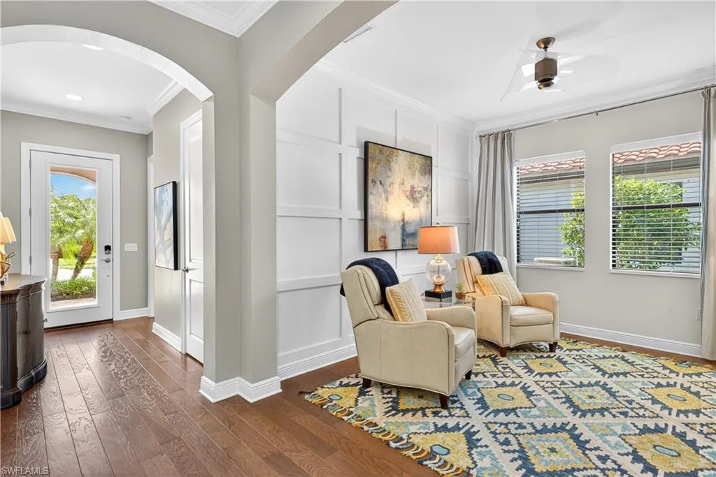 Experience the pinnacle of refined coastal living in this impeccably designed 2,420 sq. ft. WCI residence, where serene lake and preserve views greet you the moment you step through the door. Built with impact-resistant doors and windows, this 3-bedroom plus flex/dining room/den/study, 4-bath home blends timeless craftsmanship with modern sophistication.