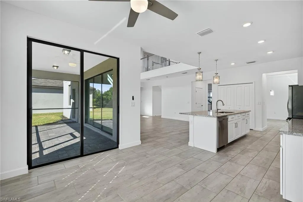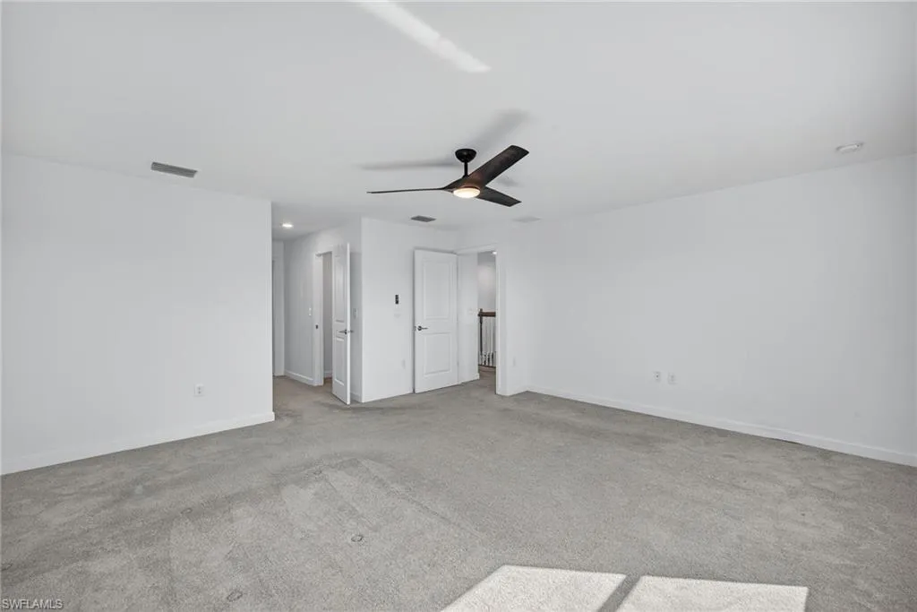 Take a look at what could be your new home at Timber Creek in Fort Myers! This 2-story Sorrento model gives you 5 bedrooms, 4.5 bathrooms, 3,357 square feet of living space, and a 3-car garage with epoxy flooring. Walk in through your front porch and the first thing you’ll notice is that inside boasts an open concept floor plan that flows together seamlessly. This downstairs area has your living room, kitchen/ dining rooms, a laundry room, one en-suite bedroom that also leads to the lanai, and a powder room. Features lining those rooms include updated ceiling fixtures, granite countertops, an oversized island, white cabinetry, stainless steel appliances, diagonally laid tile in the main areas and cozy carpet in the bedroom. On this first level you also have your screened-in lanai with plenty of room to build your own custom pool & spa! Upstairs on the second floor, is your large loft area, three guest bedrooms, and a massive owner’s suite with his and her walk-in closets, two bathroom vanities, and a beautifully tiled walk-in shower. This home is meticulously maintained and ready for you to enjoy with friends and family! As a resident of Timber Creek, you have endless amenities to enjoy outside of your new home. Those include a resort-style pool w/ hot tub, a lap pool, state-of-the-art fitness center, an indoor/outdoor restaurant and bar, play area, sauna, basketball, pickleball courts, tennis, putting green, and more! Living at Timber Creek is more than just residing – it’s a lifestyle. Your neighbors are waiting! Come check out what the Timber Creek lifestyle is all about!
