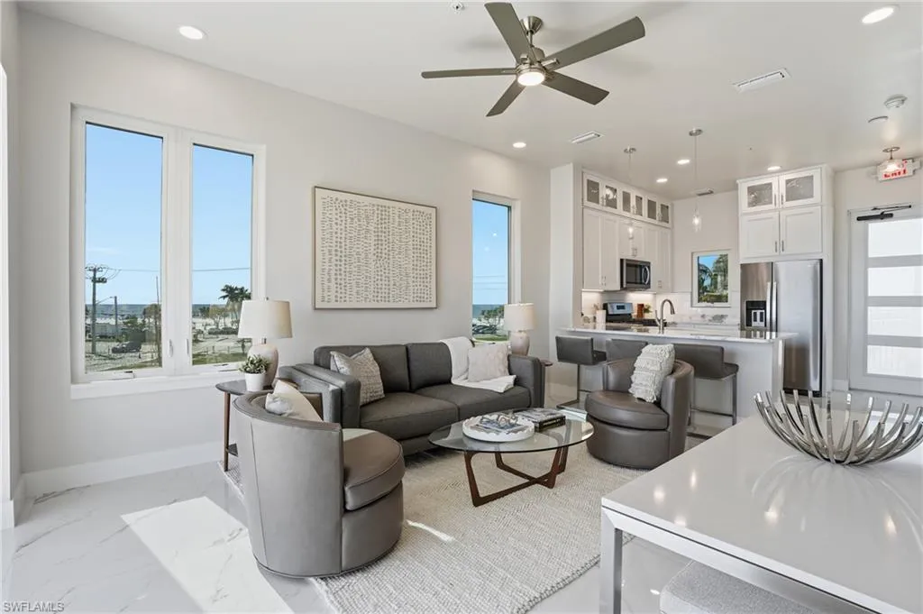 Built to Commercial Code, brand-new 2 bed/2 bath gulf-access condo on Fort Myers Beach’s coveted North End with private boat slip, rare enclosed garage, and direct Gulf access—just about 400 ft from the sand. 855 Lagoon Street was built with high-performance SIP construction, serious hurricane engineering, a new poured-concrete seawall, and easy-care tropical landscaping, so you can spend more time on the water and less on maintenance. Inside, you get a bright open layout, stylish tilework, modern cabinetry, generous bedrooms, and timeless but modern finishes. Your slip is just outside—reach the Gulf in roughly 10 minutes—or relax at the community pool, then walk to Margaritaville, Times Square, Bowditch Park, dining, shops, and the new Whale. If you’ve been holding out for a North End new-construction waterfront condo that truly checks the boxes, this is the one.
