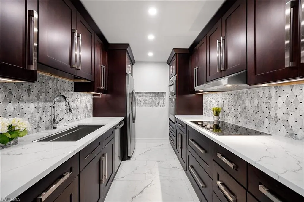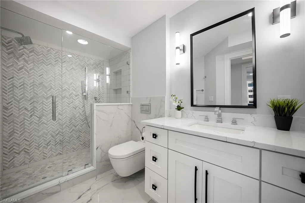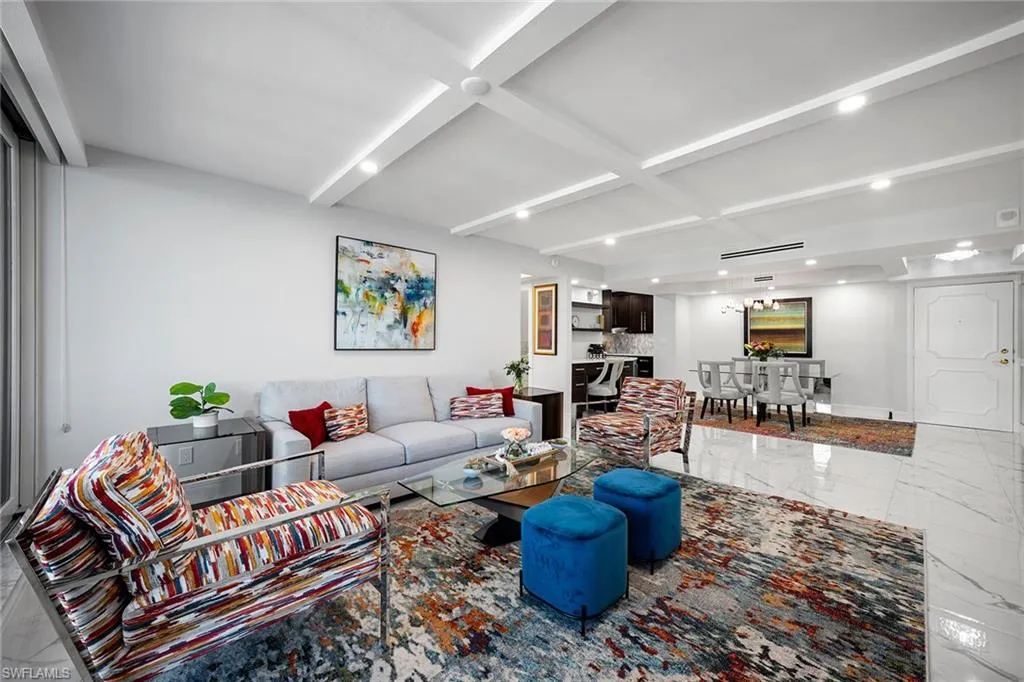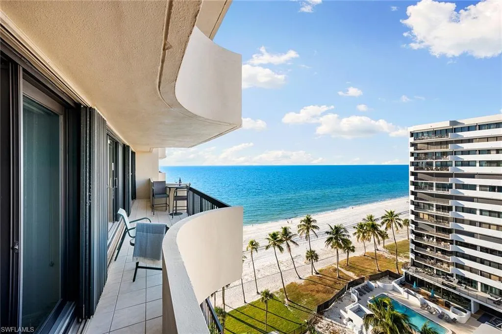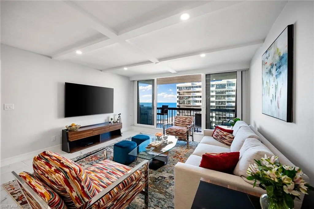 Fully renovated Park Shore 2 bed, 2 bath condo updated from top to bottom, including electrical and plumbing. Light, bright, and coastal-chic, this residence welcomes you with impact sliders that open to soothing surf sounds and wide Gulf vistas. Every room spills onto the private balcony, offering breathtaking views and gentle breezes. The Surfsedge building has undergone a complete 2024-25 transformation with a stunning new lobby, 2 beautifully redesigned guest suites, contemporary fitness rm, stylish social room, a fire pit and resort-style pool/spa/deck w/ Gulf-front grilling. Major structural upgrades: all-new electrical systems, building generator, updated plumbing, gated parking, new fob-secure entry, 24-hour security, new elevators, manager offices, and mailroom. Residents enjoy private beach access, extra storage, and bike storage. Perfectly positioned on Park Shore Beach and just a short stroll to Venetian Village, minutes to Waterside Shops, and Downtown Naples. A must-see coastal gem.