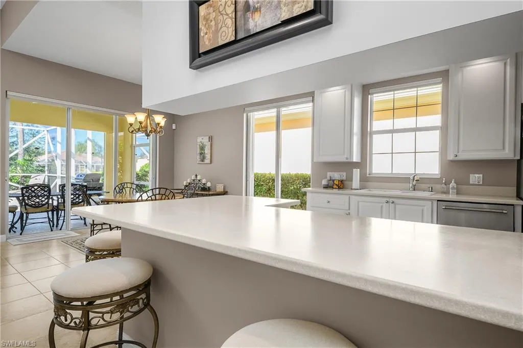 Butterflies are free to fly. Nestled in the back of Village Walk of Bonita across from our breathtaking Butterfly Gardens, you will find this immaculately kept home. This coveted OAKMONT Model with three bedrooms and a den/office is being sold fully furnished. The home is move in ready for those looking to escape the upcoming winter up North and in the Midwest . This is truly a must see property. Upon entering the home, you see right through the exterior glass sliding doors onto the Lanai sorting a newly resurfaced Pool and new pool pump. This is just one of the well maintained areas being sold with this home. Dining Al Fresco on the lanai is a special treat overlooking the pool and landscaped area. When all sliders are open, you experience indoor/outdoor living at its best. When inquiring about the Roof age, the answer is 5 Years, Air Conditioning 4 Years old. Plantation shutters are in all rooms.