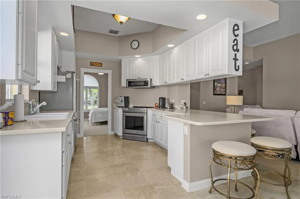 Stainless Steel Kitchen Aid appliances complement the white Kitchen cabinetry. For ease of mind, the home has Remote controlled Roll Down Hurricane Shutters on the front and back, and Accordion shutters on all remaining windows. Envision yourself living the Florida lifestyle you deserve in this serene setting. The community is well known for its abundance of clubs you can join, activities galore with onsite activities director, a Resort pool second to none with dining service poolside while mingling with other lay back residents. For the Sports enthusiast, you have access to tennis, pickleball, bocce, basketball, lap pool and large fitness center overlooking the lake; other amenities include Village Walk Bar and Grill, Library, Community Center , Gazebo, Bagel Shop, Hairdresser, Royal Scoop Ice Cream Shop, Car Wash. Recognized as one of the lowest HOA fees for what is included (even cable tv and xfinity wifi), you can’t go wrong This is truly THE place to call home. Come explore for yourself. You will be happy you did.