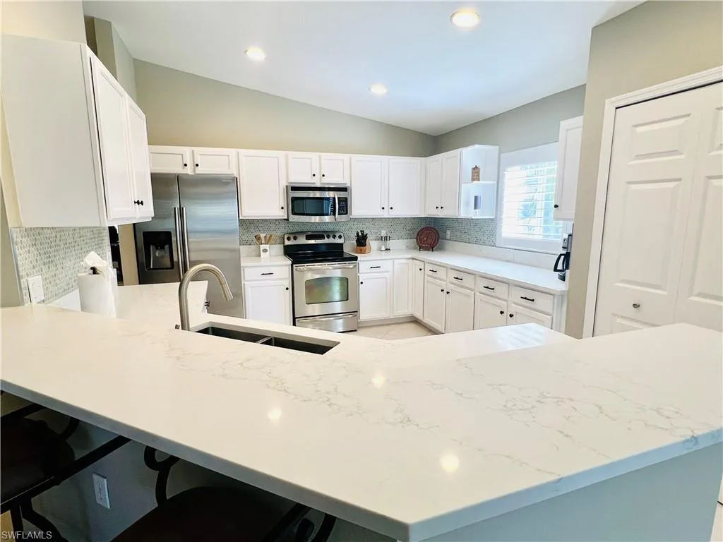 Your ideal Florida luxury-escape awaits! This beautiful 3 Bed 2 Bath condo, move-in ready, 2nd floor, furnished, CORNER UNIT, partial view of Lake & 9th hole, 1 car garage PLUS golf cart garage! Located in the Vines at Estero County Club, a desirable golf-optional community, with one of the finest golf courses in SW Florida! Perfectly designed for the seasonal, part-time or full time living! Enjoy your morning coffee overlooking the 9th hole & partial lake view from your own spacious L-shaped western exposure screened-in lanai, with amazing outdoor living space! Brand-New gorgeous Kitchen w/Quartz counter-tops, backsplash, white cabinets, stainless appliances & breakfast bar! New AC, 1805 sq ft spacious Open Floor Plan, a layout that’s comfortable & ready the moment you arrive. 3rd bedroom w/french doors, window & walk-in closet could be used as an optional office or den space! Short walk to Community Pool. Optional Sports Memberships & Full Golf Memberships are available, but not required with NO wait list! The Vines Estero Country club is a member owned, private lifestyle community with an Award Wining Renovated Clubhouse, Full-Service Dining, & Sports Bar, Tennis, Pickleball Bocce, Fitness Center, Card Rooms, Entertainment, and Active Social Calendar where every day feels like a vacation! All of this, just minutes from premier shopping, dining, Coconut Point, FGCU and RSW Airport, Hertz Arena, Jet Blue Park with Boston Red Sox & Minnesota Twins, an the beautiful SW Florida beaches! Don’t miss this one, it offers a rare blend of sophistication, convenience, and Luxury Resort-Style Living!