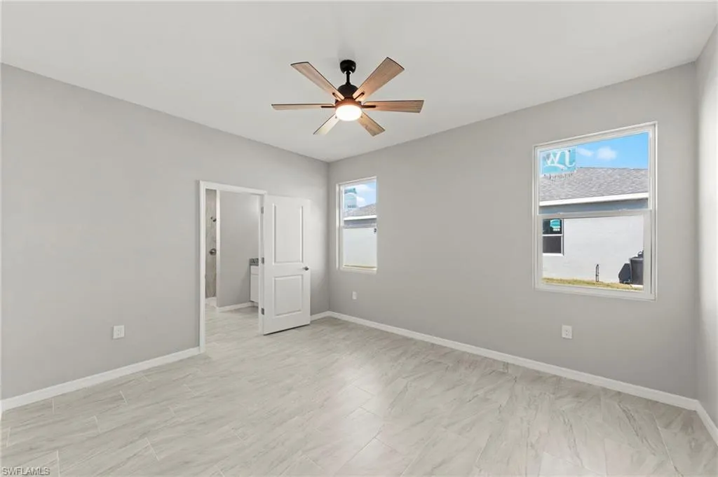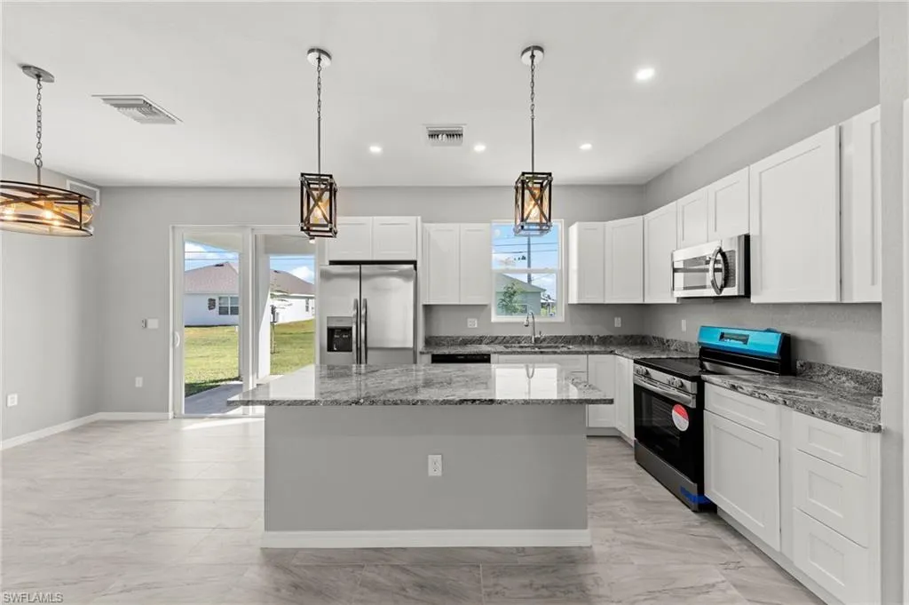 Step into modern Florida living with this brand-new Cape Coral home that hits all the marks. This 3 bedroom plus Den, 2 bathroom residence delivers a clean, contemporary feel the moment you walk through the door. The great room opens up with volume ceilings and seamless tile flooring throughout, giving the entire home a bright and spacious flow.