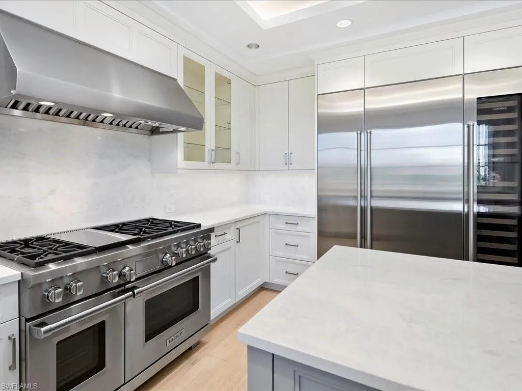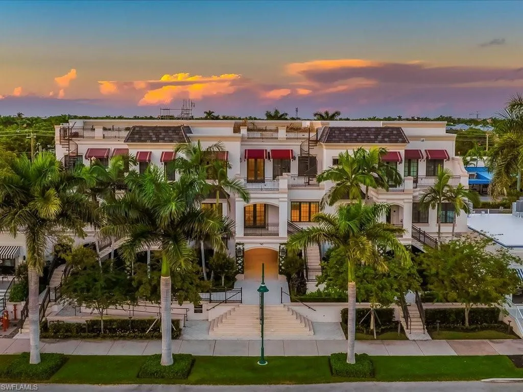 A rare blend of refined coastal living and downtown allure awaits at Seven Hundred Forty-five Twelfth Avenue South, Residence One Hundred Two, an exquisitely crafted townhome in the coveted enclave of Le Petite Trianon. Just steps from the boutiques and dining of Crayton Cove, this residence offers more than four thousand three hundred square feet of thoughtfully designed living space, built in twenty nineteen with an uncompromising commitment to quality. Two private access points, including a discreet entry through the oversized two-car garage and a private elevator, create a welcoming sense of exclusivity from the moment you arrive. The main level unfolds with beautifully proportioned living, dining, and entertaining spaces anchored by rich hardwood flooring and framed by natural light. A custom chef’s kitchen showcases a Sub-Zero refrigerator and wine column, Wolf appliances, bespoke cabinetry, and refined stone surfaces, all perfectly positioned for both intimate evenings and lively gatherings. The second level continues the home’s graceful flow with three luxuriously appointed bedrooms, a stately library, and a balcony overlooking the charm of Crayton Cove. Marble-clad baths and elevated finishes add polish to each space. A sculptural spiral staircase leads to the private rooftop terrace, an exceptional vantage point offering sweeping views of Naples Bay and the option to incorporate a spa for resort-style relaxation. Crafted for those who value privacy, elegance, and walkability, this residence places you moments from Naples’ celebrated marinas, galleries, waterfront dining, and the vibrant energy of Third Street South. Le Petite Trianon delivers a lifestyle that is both sophisticated and effortless, where refined design and an incomparable location come together in the heart of downtown.