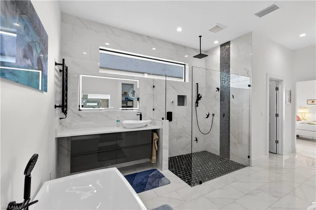 Welcome home to your own slice of paradise! This stunning 2023 custom-built lakefront home is NOT IN A FLOOD ZONE and offers 5 bedrooms, 4 full baths, and 2 half baths—all designed with comfort, style, and everyday living in mind. From the moment you walk in, you’ll love the open layout, high ceilings, and beautiful tile floors throughout. Large impact windows and sliding doors fill the space with natural light and showcase peaceful lake views.