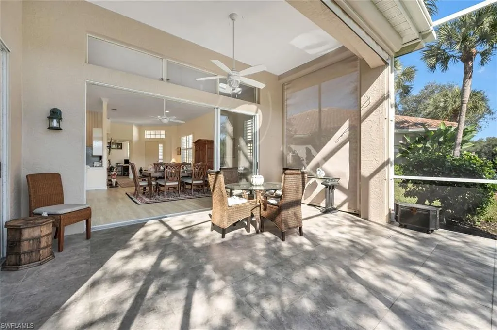 Welcome to Baycrest, a lovely and friendly community inside the gates of Pelican Landing. Now available is a 3/2 attached villa with golf course views from the extended lanai and master bedroom. This bright and airy corner unit is being offered fully furnished and ready for you to enjoy right away. Beautifully updated master bath with soaking tub, walk-in shower and gorgeous vanity and tile work. Additional features include Storm Smart shades on lanai, crown molding, new A/C in 2023, new roof in 2019 and spacious 2-car garage. Living in Baycrest