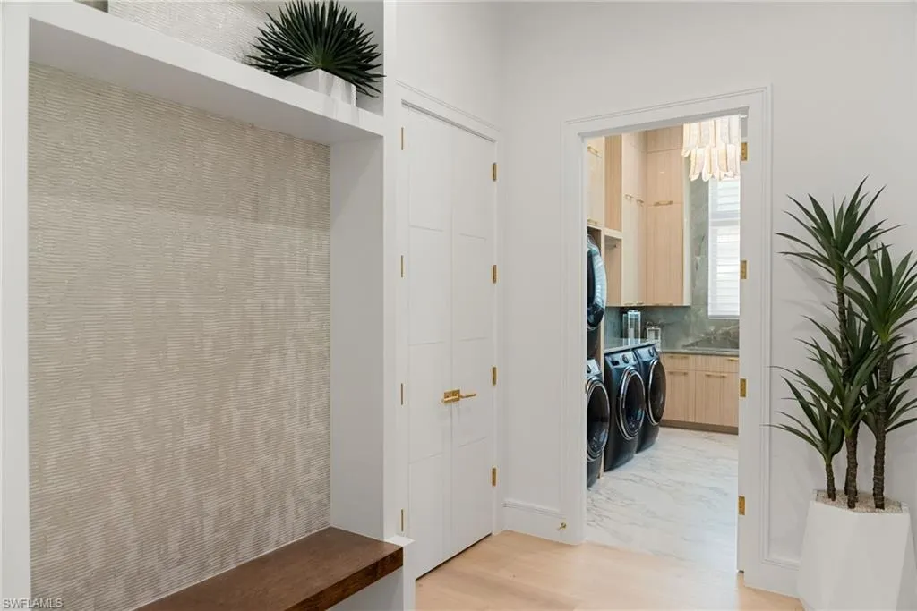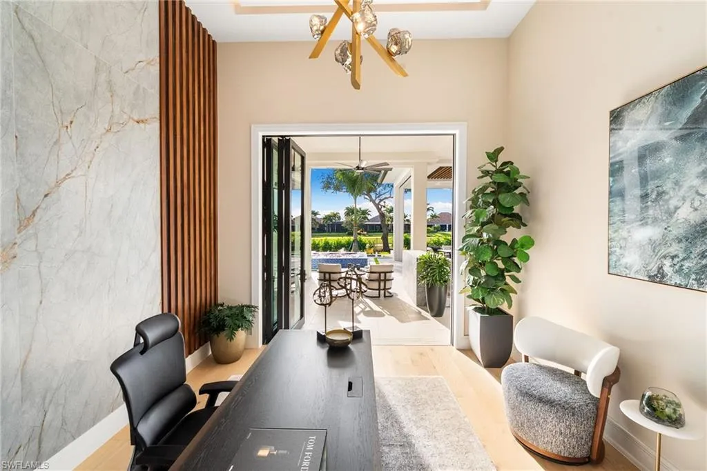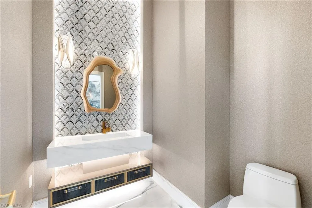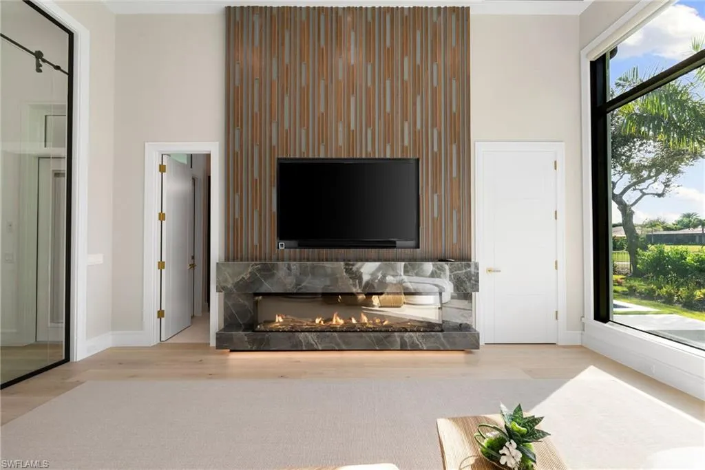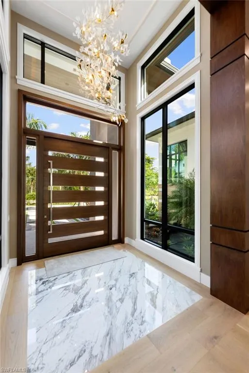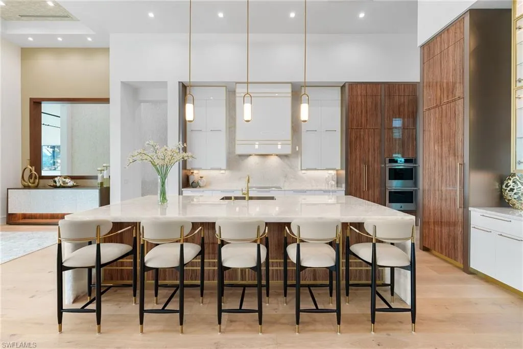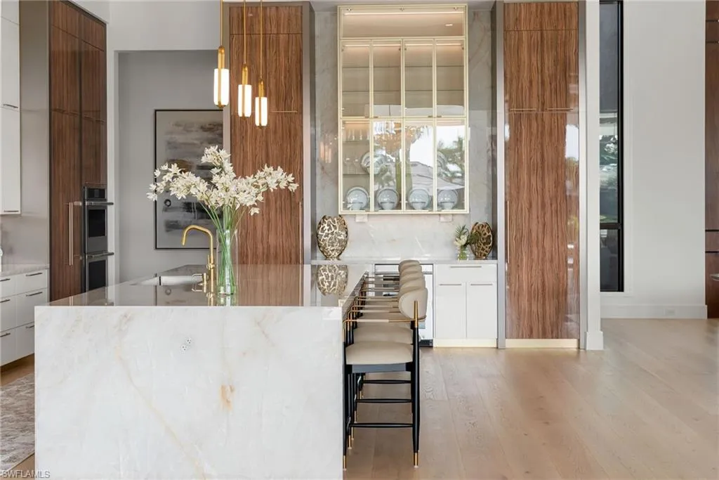 Enjoy tranquil modern elegance within this NEWLY CONSTRUCTED and custom-curated estate with IMMEDIATE GOLF MEMBERSHIP-INCLUDED! PLUS Water Views! This exceptional Estate Home has a FULLY FURNISHED interior and a luxury design package which includes carefully selected furnishings and decor for today’s sophisticated modern trends. Perfectly situated within one of Naples most prestigious communities of Quail West Golf and Country Club, a golfers paradise. This Waterfront property has gorgeous Southwestern sunset views and an inviting outdoor lanai with a unique pool/spa design, fabulous for hosting. This property is meticulously designed with a modern coastal atmosphere and exceptional luxury details throughout. Includes premium finishes of large format porcelain accent walls, unique premium glass modern cabinetry, premium signature quartzite countertops, modern appliances, creative flooring, premium light fixtures and accent illumination making this a truly dramatic home to enjoy for relaxing or entertaining. High ceilings of 12-19 ft throughout with floor to ceiling windows accentuating views from the front and rear elevations, which embodies the truly creative architectural features. The oversized garage will accommodate four vehicles plus a golf cart and storage area.