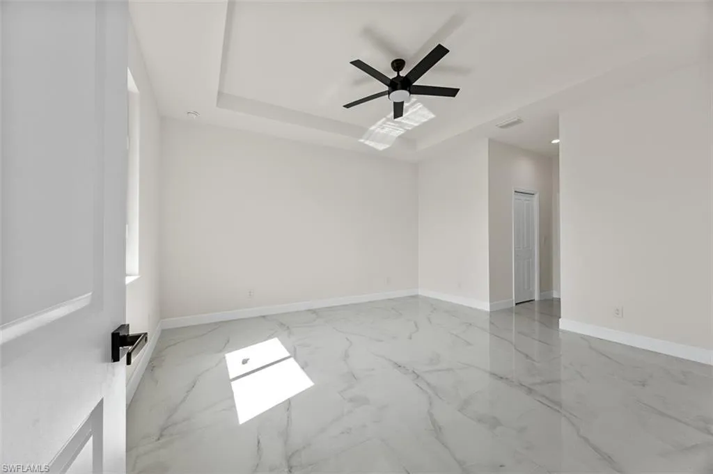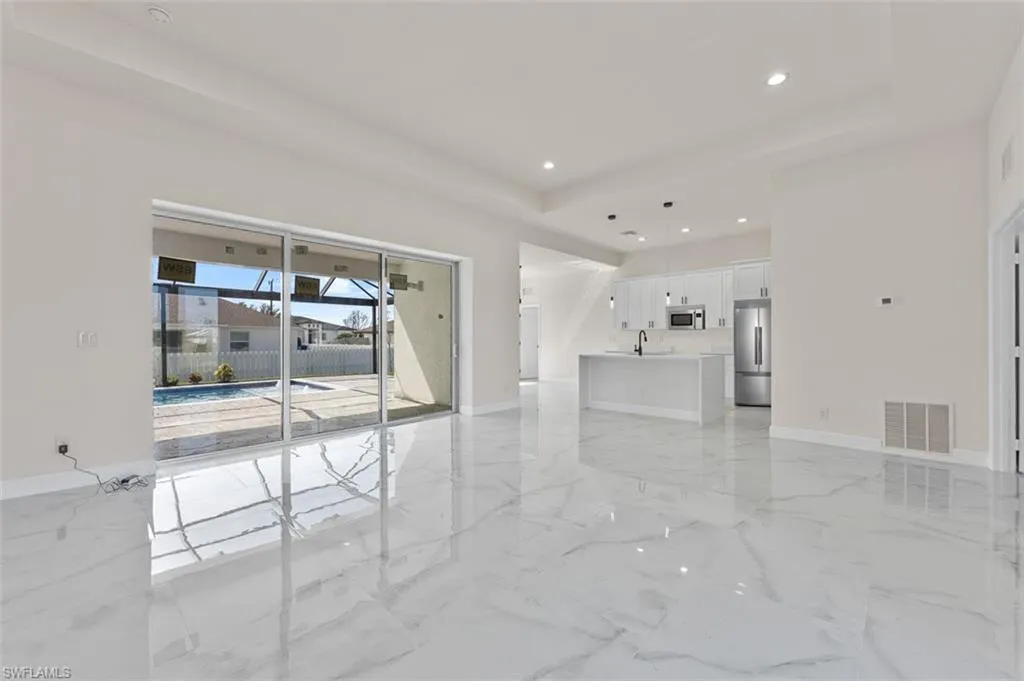 Additional features include a two car garage, paved driveway, auto sprinkler system, central electric cooling and heating, and a well and septic setup. The property is conveniently located near schools, shopping, and dining, making it an excellent opportunity for those seeking a brand new residence in a growing community. With no association fees and immediate availability, this home offers exceptional value and a lifestyle of comfort in the heart of Cape Coral.