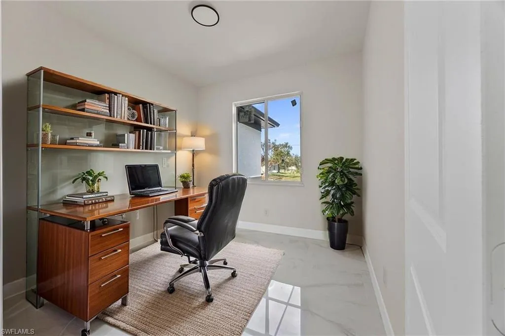 Enjoy the Florida lifestyle year round from the screened lanai that overlooks the private pool. This outdoor space is perfect for relaxing afternoons or hosting gatherings with loved ones. The home is equipped with impact resistant windows and doors, tile flooring throughout, and thoughtful upgrades such as built in cabinets, French doors, and a spacious walk in closet in the primary suite. The primary bathroom includes dual sinks and a large walk in shower.