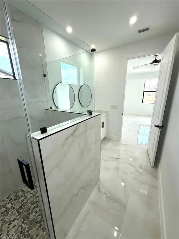 MOTIVADED SELLER , helping with closing costs. This beautiful house, conveniently located near shopping centers, restaurants, and more, is ready for occupancy with 3 bedrooms and 2 bathrooms. 24X48 It features porcelain tile throughout, quartz countertops in the kitchen and bathrooms, stainless steel appliances, an open kitchen, and stunning custom cabinets. Enjoy the walk-in shower with a glass door in the master bathroom, which is complete with dual sinks. The driveway is paved, and all windows and doors are impact-resistant for added convenience and security.