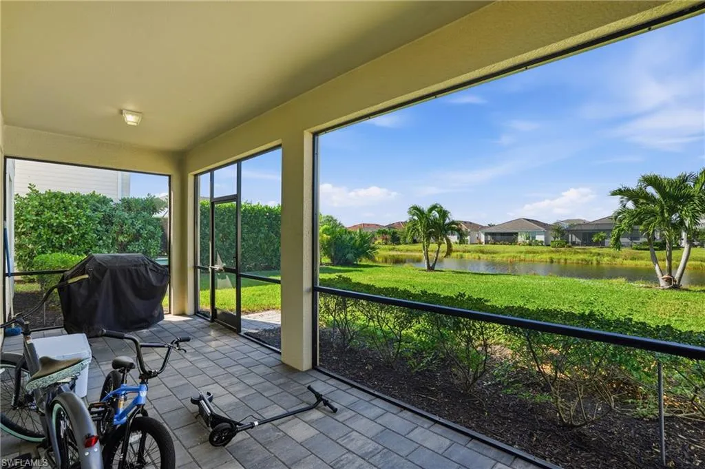 Step outside and you instantly notice why this property is so special. The extended driveway gives the home a wide, comfortable arrival experience. The backyard is enormous, offering the kind of outdoor space that lets you truly enjoy Naples weather all year long. The covered lanai is perfect for relaxing in the shade while taking in the peaceful lake views and beautiful sunset sky every evening.