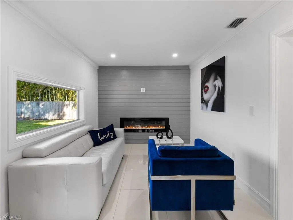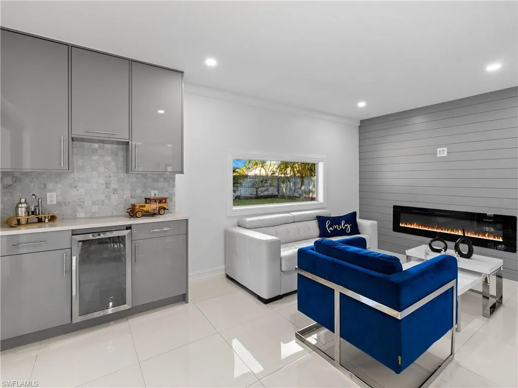 Wired in Security Camera System, Electric Heated Fireplace & Built-In Bar w/quartz countertop & wine fridge, Non-Conforming Converted Garage includes: 4th Room w/Walk-In Closet & Oversized Laundry Room,