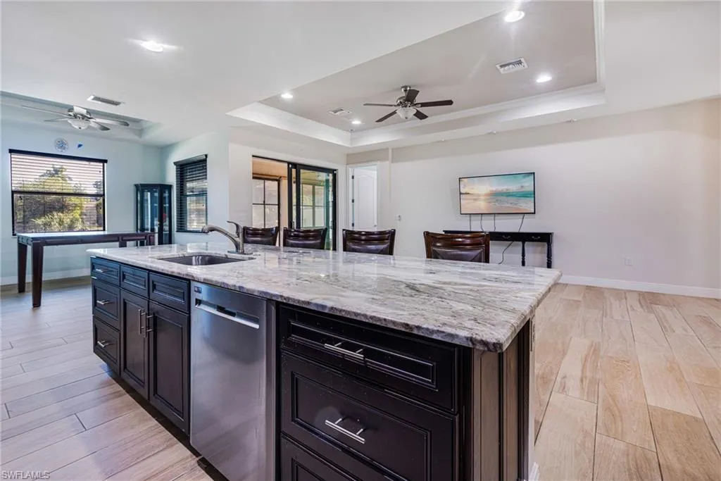 This 2018-built home invites you to experience Bonita Springs waterfront living at its most elevated—high, dry, and undeniably beautiful. Elevated where it matters, yet thoughtfully crafted with a stair-free entry, offering effortless accessibility without compromising on safety or style.