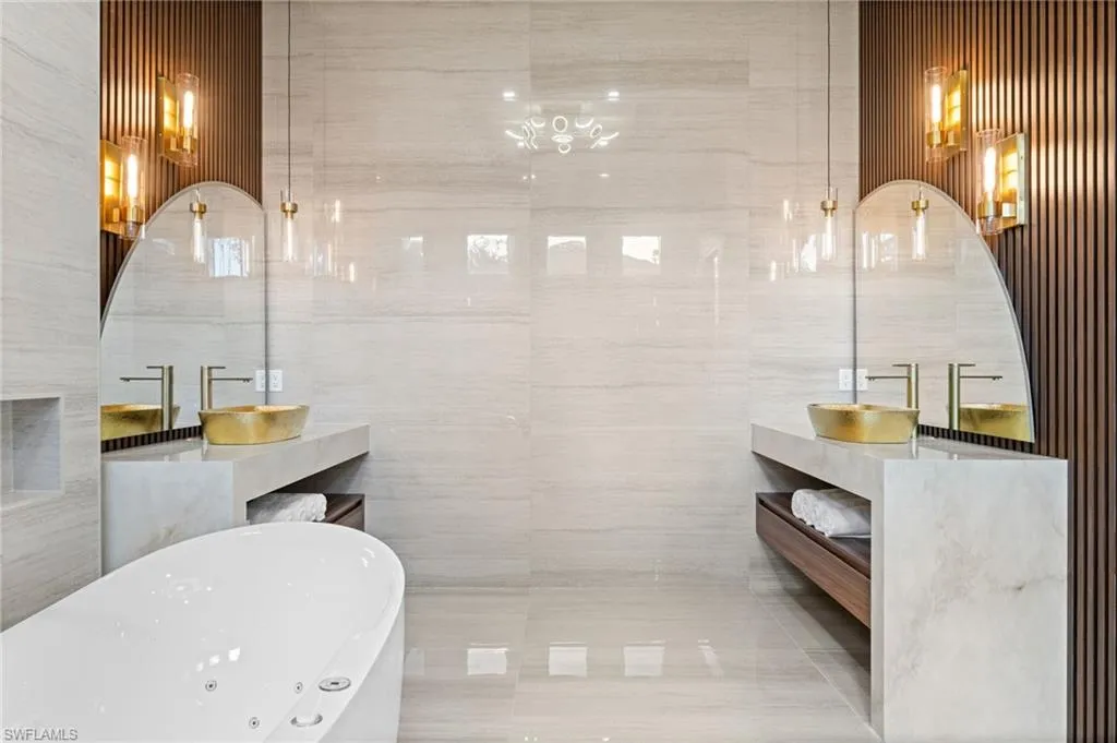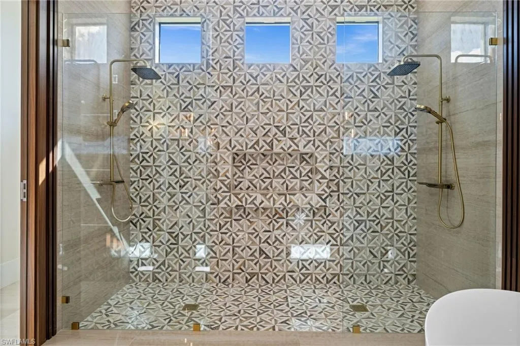 The resort-style outdoor oasis includes a stunning pool and spa, beautiful water features, fire-bowls, a built-in fire-pit seating area, hurricane-impact windows and doors, and an impressive 25 kW generator to ensure uninterrupted comfort. Additional conveniences include three separate laundry rooms—upstairs, downstairs, and in the casita—along with a four-car garage, elevator, and expansive outdoor living spaces designed for both entertaining and quiet relaxation. The primary suite is conveniently located on the main level. Perfect for the luxury buyer who demands the very best, this estate offers unparalleled elegance, privacy, and craftsmanship in one of Naples’ most sought-after neighborhoods. This home is perfect for a large family that loves to entertain.