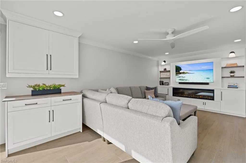 Welcome to Coquina Club, a prestigious bayfront community nestled in the Moorings. This exquisite 3-bedroom, 2-bathroom condo has been completely transformed, offering a luxurious, modern living experience. With breathtaking views of the bay and a prime location, this is truly a rare opportunity. As you step inside, you’re greeted with an abundance of natural light, courtesy of the unit’s end location and large windows throughout. The space features stunning wood-like porcelain tile throughout, creating a seamless flow. The open-concept living and dining area is perfect for entertaining. The chef’s kitchen is a true highlight, equipped with top-of-the-line Viking and Wolf appliances, including an induction cooktop for the ultimate cooking experience. The beautifully crafted cabinetry offers ample storage and the sleek design makes this space both functional and stylish. The unit comes with a full-sized washer and dryer for added convenience, and the newer A/C system and tankless water heater ensure energy efficiency. The entire condo is protected by hurricane impact windows and sliders, providing peace of mind year-round. The property includes one assigned parking spot under a carport and is being offered turnkey, negotiable. Also, included is a leased boat slip with a 25’ Cobalt dual console boat. With multiple beach access points in walking distance, this condo is ideally located seconds from Venetian Village and only three miles from downtown Naples, offering a wealth of shopping, dining, and entertainment options. Coquina Club’s exceptional amenities include a bayside saltwater pool, grilling area, social room, showers, sauna, private storage, and 22 boat slips and kayak racks. This meticulously renovated unit offers everything you need for the ultimate Naples lifestyle. Don’t miss your chance to call this exceptional condo your new home!