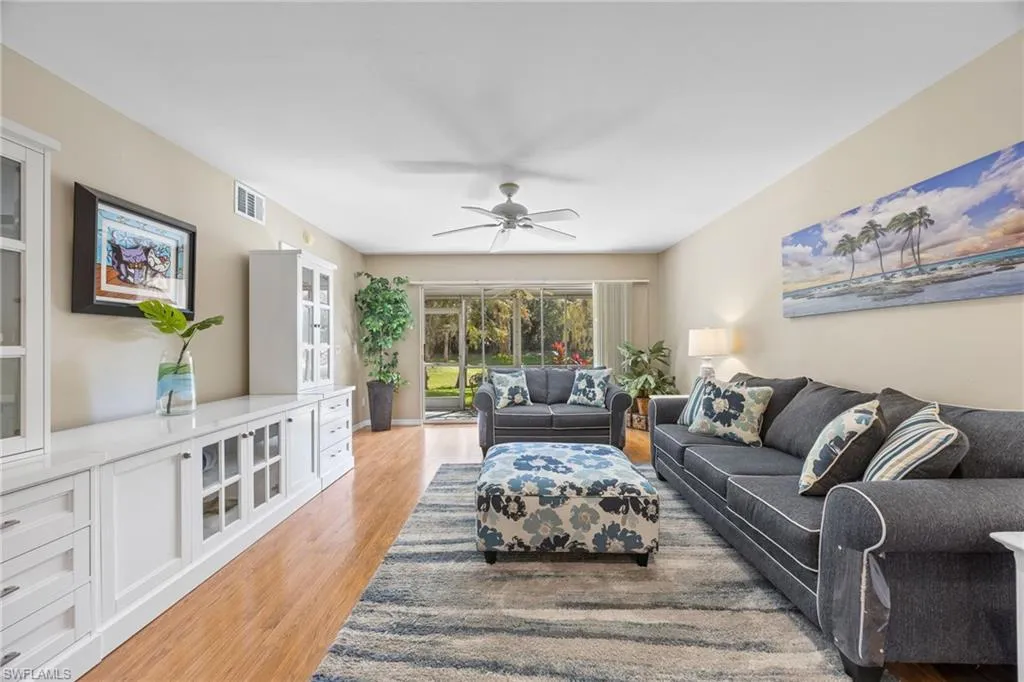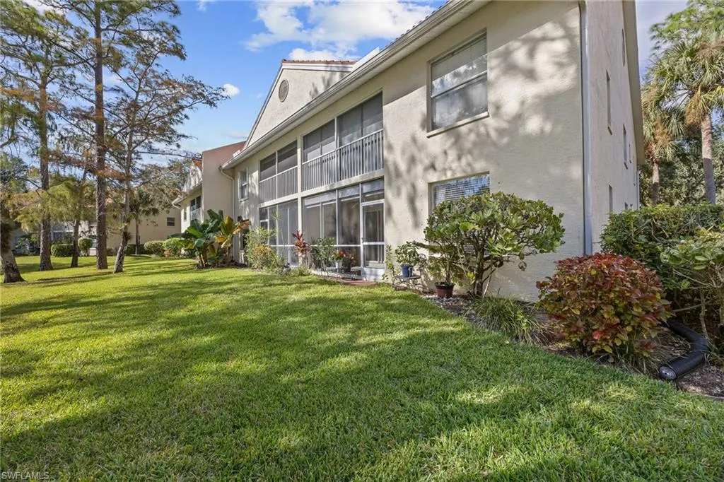 Discover sunshine, serenity, and scenic lake views in this inviting first-floor condo (no steps) located in the highly desirable Sherwood community of East Naples. Offering partially furnished 3 bedrooms and 2 bathrooms (one of the bedroom has double doors and could make the perfect den), this residence is perfectly positioned in a non-flood zone with sunny southern rear exposure.