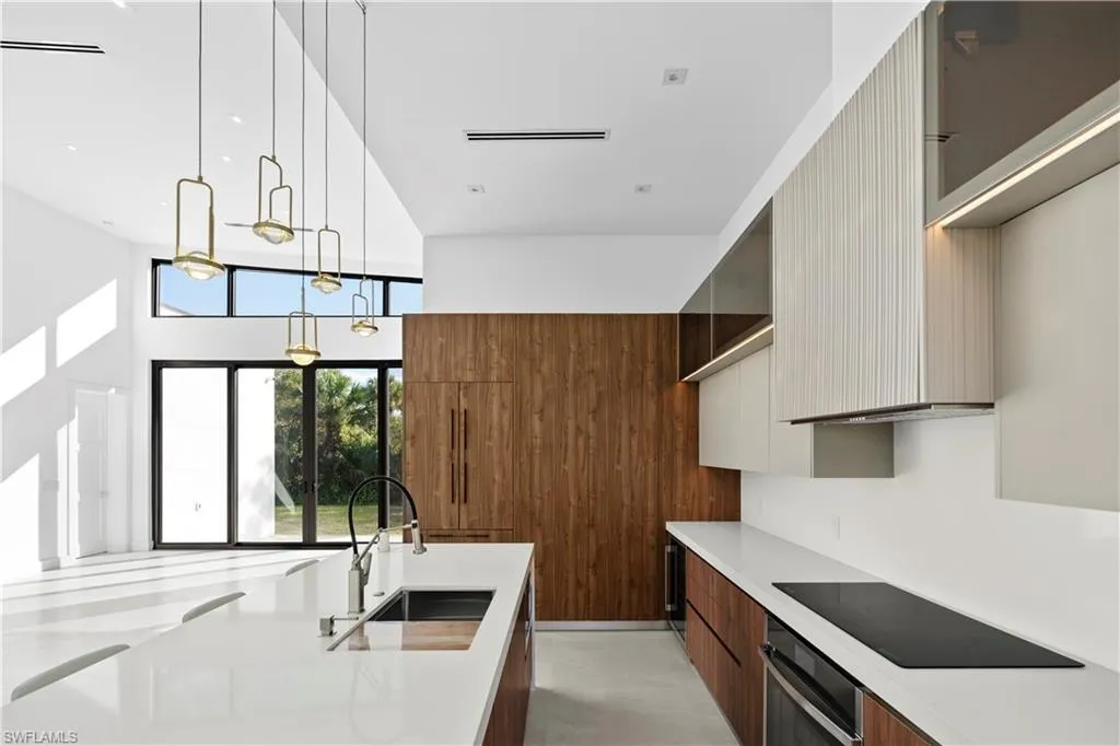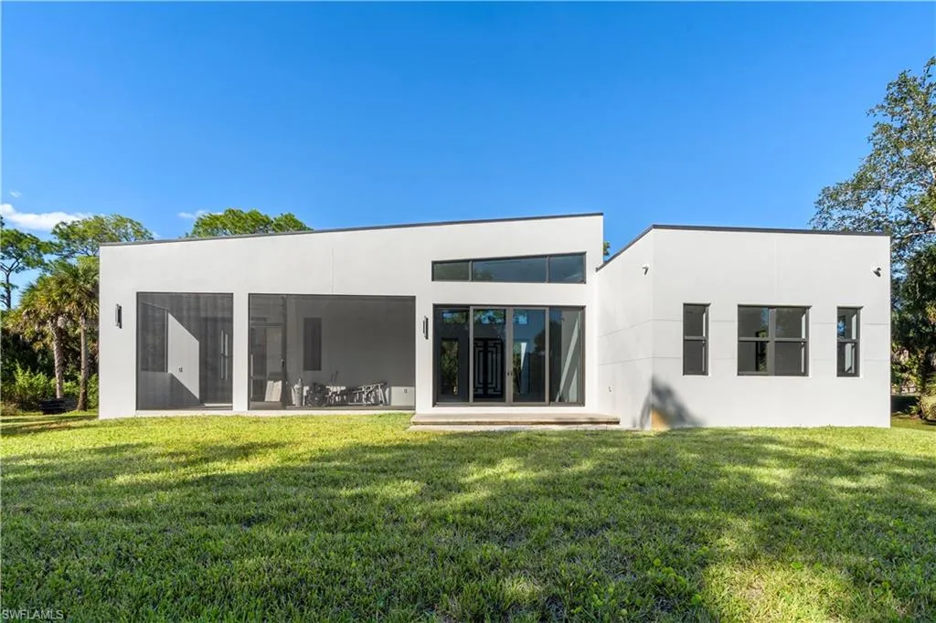 Stunning Custom New Construction in Golden Gate Estates! Experience luxury living on 2.73 acres with this brand-new, high-end custom home featuring 4 bedrooms and 4.5 baths. Designed with a modern open split floor plan, this residence showcases soaring 14-ft ceilings in the great room and a custom Italian-designed kitchen with panel-ready, top-of-the-line appliances. Enjoy year-round comfort with two central HVAC systems, and peace of mind with high-impact hurricane windows and doors, a full water filtration system, and a security surveillance system already in place. Inside, you’ll find solid wood doors throughout, quality, and timeless elegance. The home also features a spacious two-car garage with an epoxy-finished floor, a sleek flat roof with PARA pet protection, stem wall raised foundation wall built from reinforced concrete vs your typical concrete slab and thoughtful modern finishes throughout. This is a prime opportunity to own a beautifully crafted estate home in one of Naples’ most desirable areas. Survey, elevation certificate, and full plans are available for your review. Perfect for the buyer seeking space, style, and unmatched quality — welcome home!