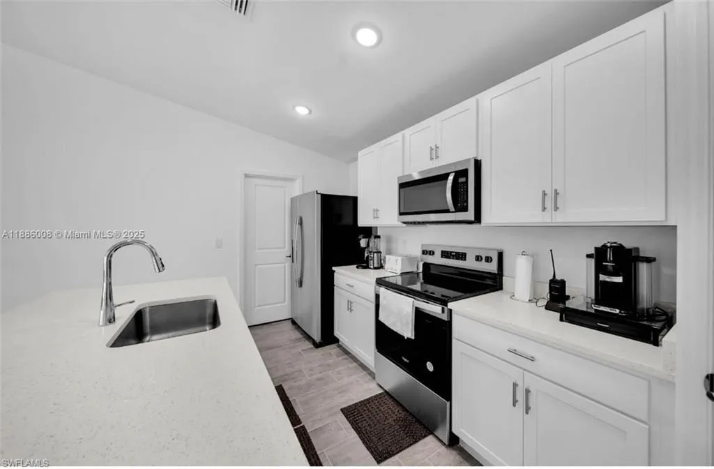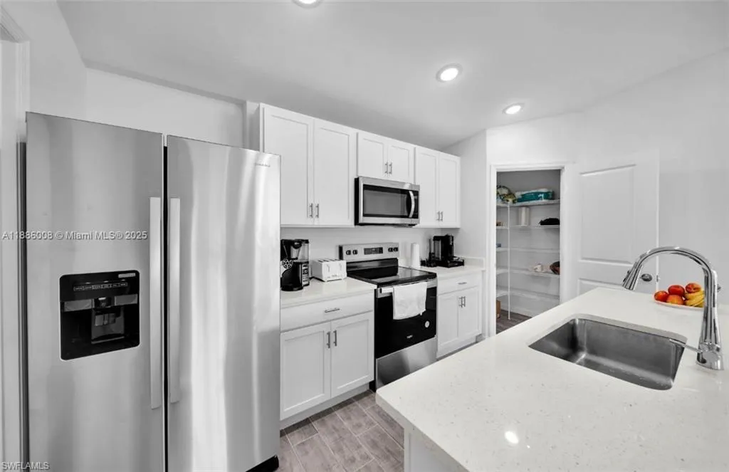 Brand-new construction. The Weston model features a thoughtful open-concept design with three bedrooms, two bathrooms, and a two-car garage. The kitchen is equipped with upgraded 36″ contemporary shaker-style cabinetry, a spacious 7-foot wide island, and premium countertops. It also includes a Whirlpool dishwasher, microwave, and range, while overlooking a bright, open great room with stunning tile plank flooring and vaulted ceilings. The expansive owner’s suite comes with an en-suite bathroom, featuring a separate water closet, dual vanity sinks, a separate linen closet, and a large walk-in closet. The Weston also includes a decorative brick paver driveway, professionally designed landscaping with an irrigation system, and carefully chosen paint colors, lighting, and plumbing fixtures.