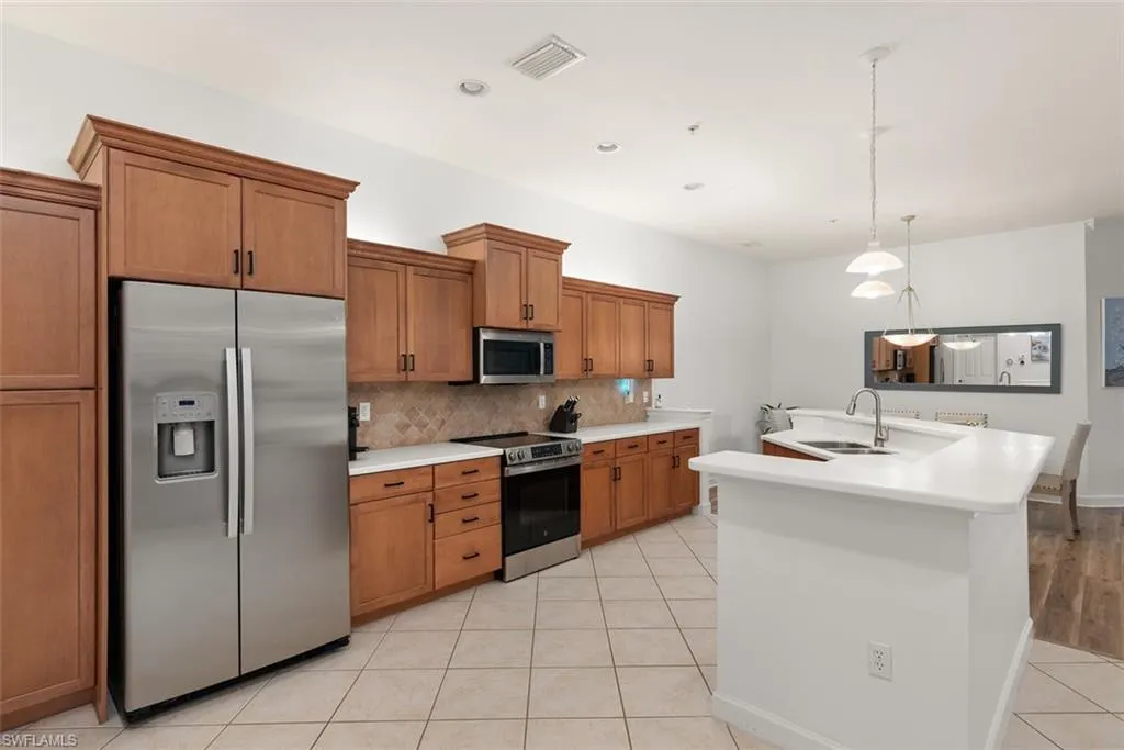 Located in the desirable Enclave section of Rapallo, this beautifully maintained second floor, end unit coach home offers resort style living in the heart of Estero. Rapallo is a Mediterranean-inspired gated community perfectly positioned within walking distance to Coconut Point Mall-with its endless shops and restaurants and soon the new Marketplace shops and restaurants directly in front of Rapallo. This units has been beautifully maintained and offers a light and bright open concept, newly installed LVT planks thoughout living area and bedrooms. A gourmet kitchen allow for entertaining and ample storage. Laundry room is off the kitchen. The Primry suite has sliding doors out to the Lanai along with Great Room out to the lanai. The Lanai has been enclosed with Plexiglass sliders providing more air conditioned square footage. This southern view is so peacefull and private overlooking lake and fountain views. DESIGNATED PARKING SPOT RIGHT OUTSIDE YOUR DOOR. You have a pool,lakehouse, and barbague area right outside your door and a boardwalk that takes you over to all the amenities that Rapallo has to offer. Some are the two Lagoon style pools with Rock grotto waterfalls, Jr olympic screened Lap pool, fitness center with a full time fitness director. Five har Tru tennis courts with full time tennis pro, Bocce Ball, bike and jogging paths, fountains and lakes troughout. An Activity Director will keep your calandar full with activiities. The Clubhouse has a full catering kitchen, and Library. Rapallo is only 12 miles to the International Airport and just minutes to our beautiful beaches. Rapallo is not in Flood Zone and had 3 year old roofs, Hurricane rated windows and is truly the safest place to be during a Hurricane.