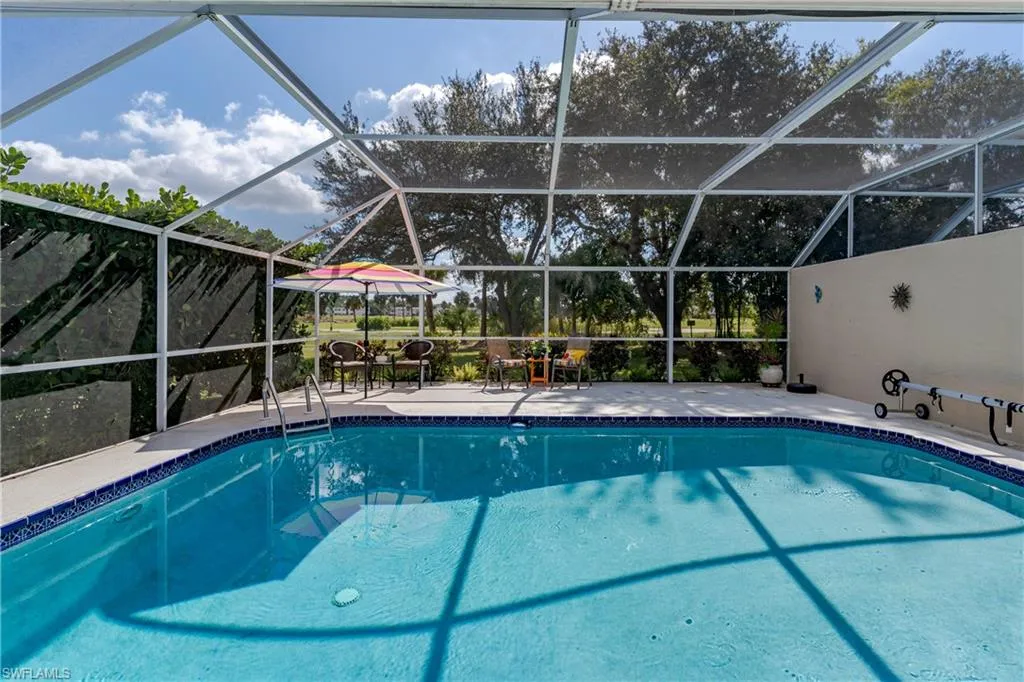 Move Right into this TURNKEY/FURNISHED 2 Bedroom, 2 Bath, POOL HOME with GOLF COURSE VIEW! This Attached Villa has been Well Maintained and Many Items that Typically are of Concern to Any Buyer have Already Been Recently Addressed, such as: NEW ROOF and HVAC (2023), HOT WATER HEATER (2025), REFRIGERATOR (2023), LUXURY VINYL FLOOING THROUGHOUT (2024), POOL HEATER (2022), POOL CAGE SCREENS (2025) and IRRIGATION WELL PUMP (2023). Numerous Windows and Doors Provide Generous Outdoor Light that’s Magnified by Dual Skylights Over the Dining Room as well as Sliders Leading Out to the Lanai from both the Master Bedroom and Living Room. Enjoy Your Morning Breakfast or After Dinner Beverage Poolside on Your Covered Lanai, or Sit Outside in Your Shaded Yard and Feed the Ducks as they Waddle Up from a Neighboring Pond. The Home Offers Ample Storage including Attic Space and Metal Storage Racks in the Garage. Golfside Village Drive is a Private Road that was Just Newly Paved (04/2025) and is Tucked Away in a Quiet, All Family Neighborhood, with Little Through-Traffic. This Year-Round Residence, Winter Retreat or Investment Property is on City Water/City Sewer and NOT IN A FLOOD ZONE! Best of all, there is NO HOA making this Home Very Affordable. It’s not Often a Pool Home just off a Golf Course Comes on the Market at This Price. Take Advantage of this Excellent Opportunity and Make a Showing Appointment Today!