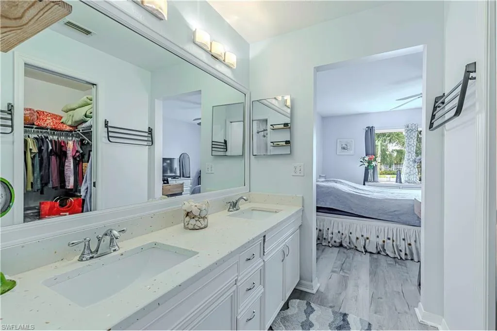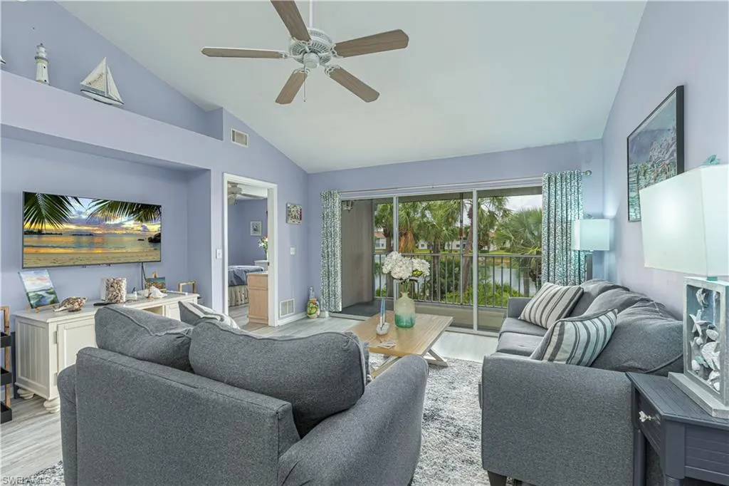 Beautifully Updated Lakefront Condo in Desirable Sapphire Lakes! Enjoy the serene lake views and an unbeatable location just minutes from Naples’ famous beaches, downtown shopping, and dining in this spacious and tastefully upgraded 2-bedroom, 2-bath second-floor condo. This move-in ready unit presents an open floor plan with vaulted ceilings, abundant natural light, and a large screened lanai overlooking the sparkling lake. The Kitchen has new stainless steel appliances, a pantry, breakfast bar, and ample cabinet space. The living area and hallway offer wood-look plank flooring The primary suite has new floor and it is a true retreat, offering peaceful water views, a large walk-in closet, and an updated ensuite bathroom with dual vanities and a new walk-in shower. The guest bedroom has a new floor and it is generously sized and adjacent to a full guest bathroom. The condo has brand-new hurricane impact windows (lifetime warranty) a New electric panel, New washer and dryer, New water heater, New flooring in both the bedrooms and customs curtains. Sapphire Lakes is a gated and beautifully landscaped community, offering resort-style amenities including four pools, tennis, pickleball, shuffleboard, bocce courts, BBQ areas, a car wash station, and scenic walking and biking paths. This home is ideal as a full-time residence, seasonal getaway, or investment opportunity. Pet-friendly community with low fees and excellent management. Don’t miss this rare opportunity to own in one of Naples’ most desirable and conveniently located communities!