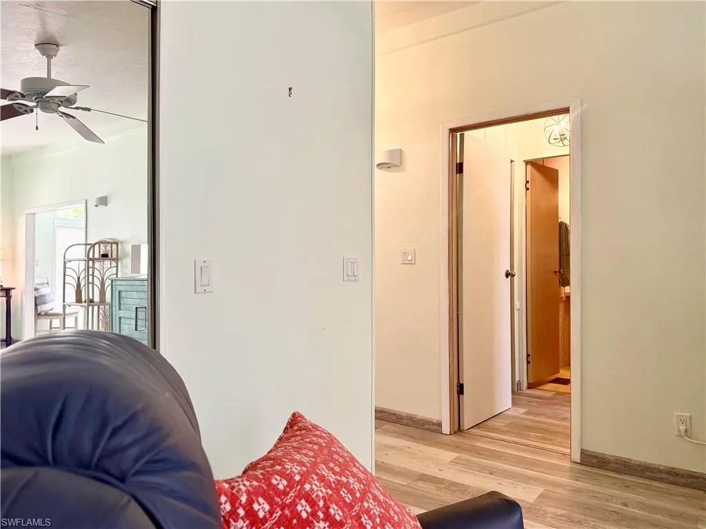 Excellent location within Imperial Wilderness Condominium Association of Naples, FL — This home, on LAND that YOU OWN, features 1Br/1.5Ba and a bonus room (bonus room is currently used as a Br with TV and 2 twin adjustable beds). Additionally, this property offers a serene rear view with access to the Nature Trail and very close proximity to both dog parks. The home – being sold furnished – contains updated furniture, some updated appliances, some updated lighting, a roof-over, laminate plank flooring, and an updated hot water tank. IWCA is a gated 55+ community located minutes from numerous restaurants and stores with easy highway and easy airport access (a 45-minute drive to Ft. Myers via I75). Beaches are also close– 11 miles to the Naples beaches and 8 miles to Marco Island beaches. Of extreme importance, IWCA was never flooded and has not been affected by any recent hurricanes. This home is ideal for seasonal, full-time, or rental purposes. The HOA fee of $898. per quarter covers many of your needs: water, lawn care, basic cable, trash/recycling, and community amenities. Plus, there are numerous community amenities: 2 pools with spas, a nature trail, pickleball, tennis, horseshoes, bocce, pétanque, memorial garden trail, 2 dog parks (there is a 1 pet– 40lb. max.– restriction), and the ability to drive an electric golf cart within the park. On top of everything, IWCA offers an extremely active social events calendar.