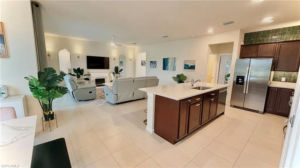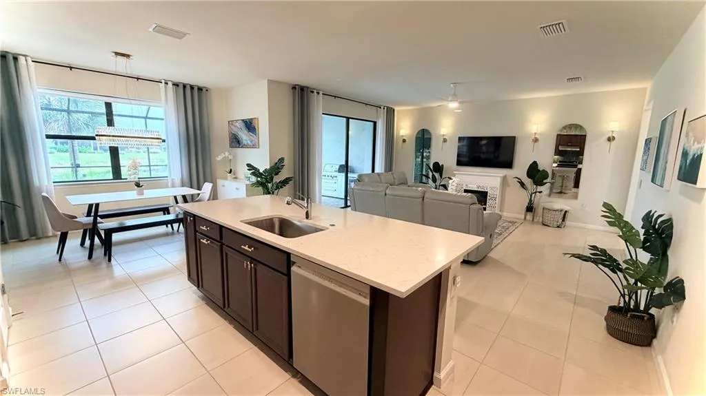 Welcome to 2085 Yellowfin Circle – the perfect blend of luxury, comfort, and Florida living! This stunning 5-bedroom, 3-bath home is located in the desirable gated community of Manatee Cove, offering low HOA fees, no CDD, and natural gas throughout. The spacious open floor plan features a 3-car garage with insulated doors, a tankless gas water heater, and numerous upgrades inside and out. Step outside to your private oasis—an extended screened lanai with a heated pool, outdoor kitchen, and tranquil lake views. Perfect for entertaining or relaxing year-round! Additional highlights include location within Flood Zone X, meaning flood insurance is not required by mortgage lenders, adding peace of mind and long-term savings. Manatee Cove residents enjoy HOA covered landscaping, a heated community pool, fire pits, and a welcoming neighborhood feel, just minutes from shopping, dining, beaches, and all that Naples has to offer. Enjoy modern design, energy efficiency, and a peaceful lifestyle in one of Naples’ most convenient locations.