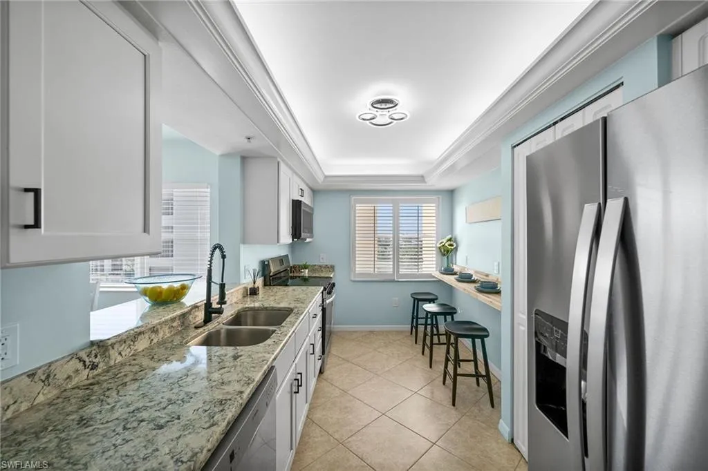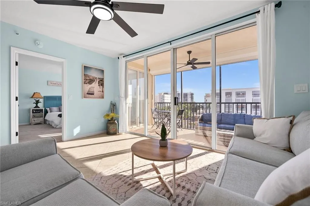 Welcome to your slice of paradise in Fort Myers, Florida! This stunning 4th-floor condo with views of the bay offers the ultimate beach lifestyle with deeded beach access to the pristine shores just steps away. The open and airy layout boasts breathtaking views of the surrounding area, filling your home with natural light and ocean breezes. Option to purchase a boat dock in the community Inside, you’ll find a beautifully updated kitchen with sleek granite countertops, modern stainless steel appliances, and a cozy breakfast bar perfect for enjoying morning coffee. The spacious living area features large sliding glass doors leading to a private screened-in balcony, where you can relax and soak in the views of the lush surroundings and the serene waterfront breeze. The condo offers three generously sized bedrooms, each with ample closet space and stylish ceiling fans for added comfort. The master suite includes a private en-suite bathroom with dual sinks and a walk-in shower, providing a spa-like retreat. The guest bathroom is equally impressive with modern fixtures and a clean, contemporary design. Residents of this desirable community enjoy access to a range of amenities, including a sparkling community pool, a well-appointed clubhouse, tennis, deeded fishing pier, deeded beach access, pickle ball, golf putting and driving cage, bocce ball and walking paths option to purchase a boat dock for direct access to the Gulf waters. With an elevator for convenience and a location that offers both tranquility and easy access to Fort Myers’ vibrant dining and shopping scenes, this condo is the perfect blend of luxury and leisure. Don’t miss the chance to make this beachside haven your new home. discover the perfect combination of comfort, convenience, and coastal charm! Highlight shutters on the laini
