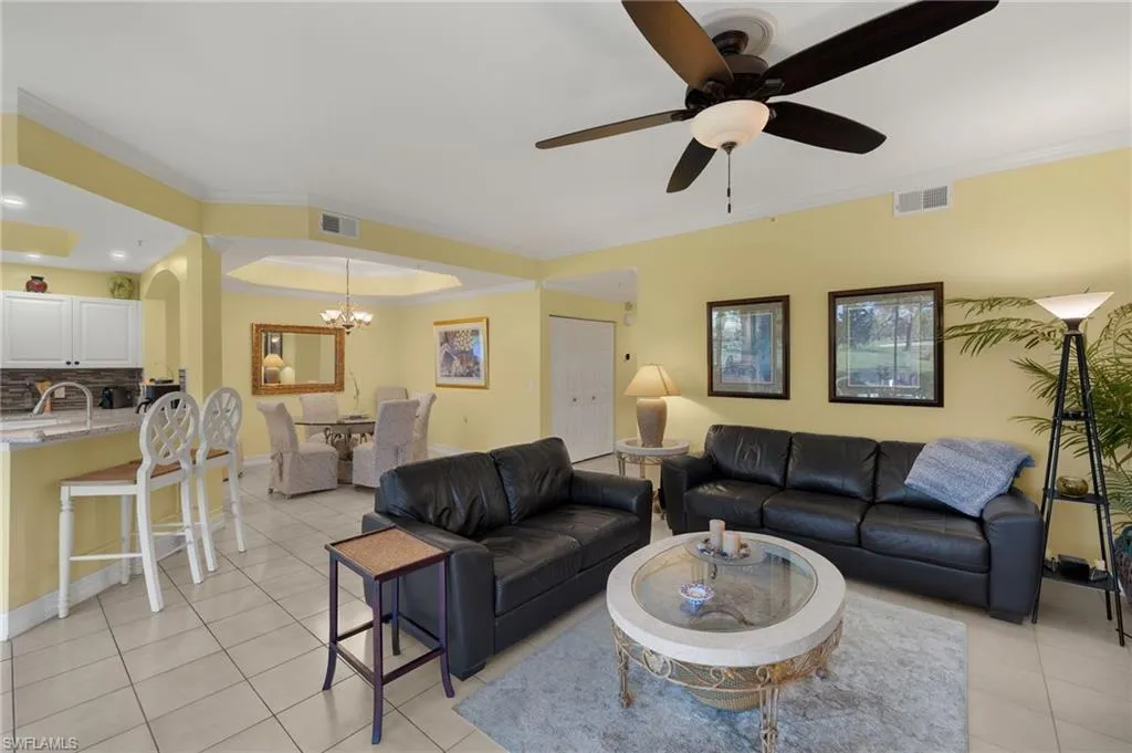 Great opportunity and investment! This 1st floor two bedroom, two bath condo is being sold turnkey and has one of the most magnificent views with three fairways and the large lake. This lovely condo has an updated kitchen with white cabinets, granite counter tops and decorative glass backsplash. Other interior features include tile and bamboo flooring, crown molding, A/C 2022, glass storm door with hidden screen is great for letting the Florida sunshine brighten up the home, or letting the tropical Florida breeze flow through. Most windows are impact resistant and the tiled lanai has updated picture frame screens. There is a tenant in place for season, buy now and receive the income, or you can close after. If you are looking for an active lifestyle look no further: 27 holes of Championship golf, 14 pickleball, 8 tennis and 6 bocce courts. State of the art fitness center that is professionally staffed. Pelican Sound is nestled up to the Estero River with access to the Gulf. The community offers dry boat storage, kayaks, canoes and paddle boarding, along with a shuttle boat to Lovers Key State Beach Park. Minutes from RSW International airport and surrounded by fabulous shopping and restaurants. Start Living The Dream!