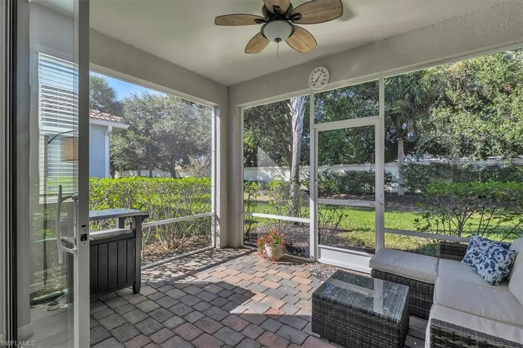 Step out to the extended lanai and enjoy your private outdoor oasis, now enhanced with a screen enclosure– perfect for morning coffee, evening cocktails, or entertaining friends while staying cool and bug-free year-round.