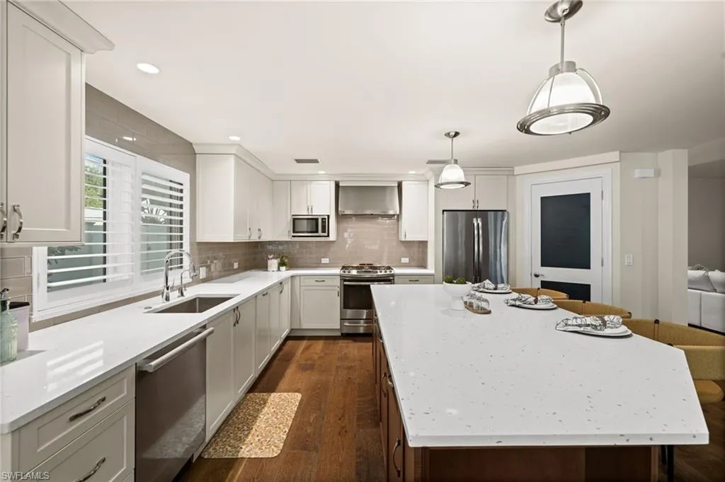 Step into a like-new 2016 custom-built craftsman home that feels brand new thanks to a just-completed full interior repaint. Warm wood floors, custom cabinetry, and quartz countertops set the tone for a home that’s as stylish as it is functional—all in one of Naples’ most convenient central locations.